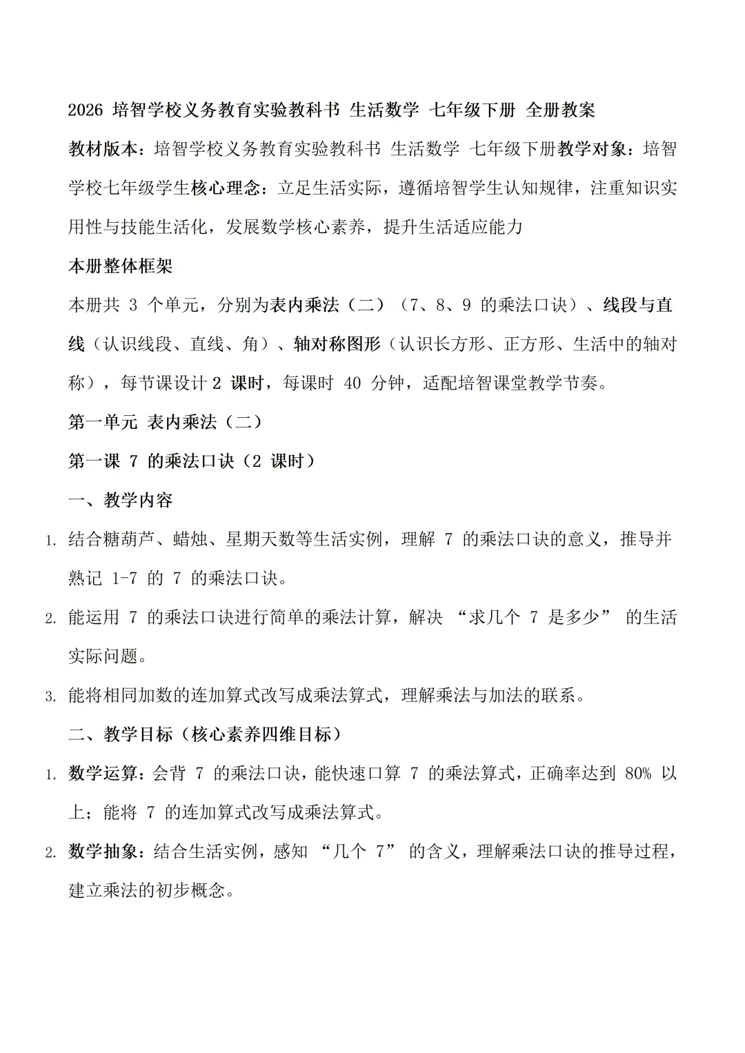 生活数学七年级下册核心素养教案含反思,可下载编辑!