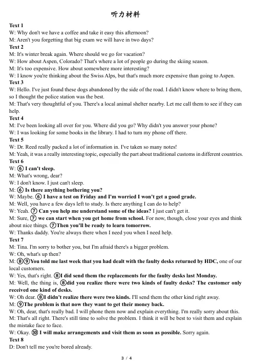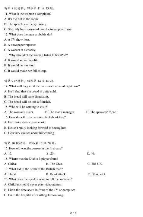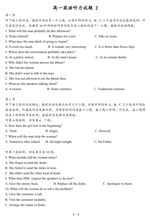 高一英语听力模拟训练 第2套<文末附电子版免费下载链接+听力音频>