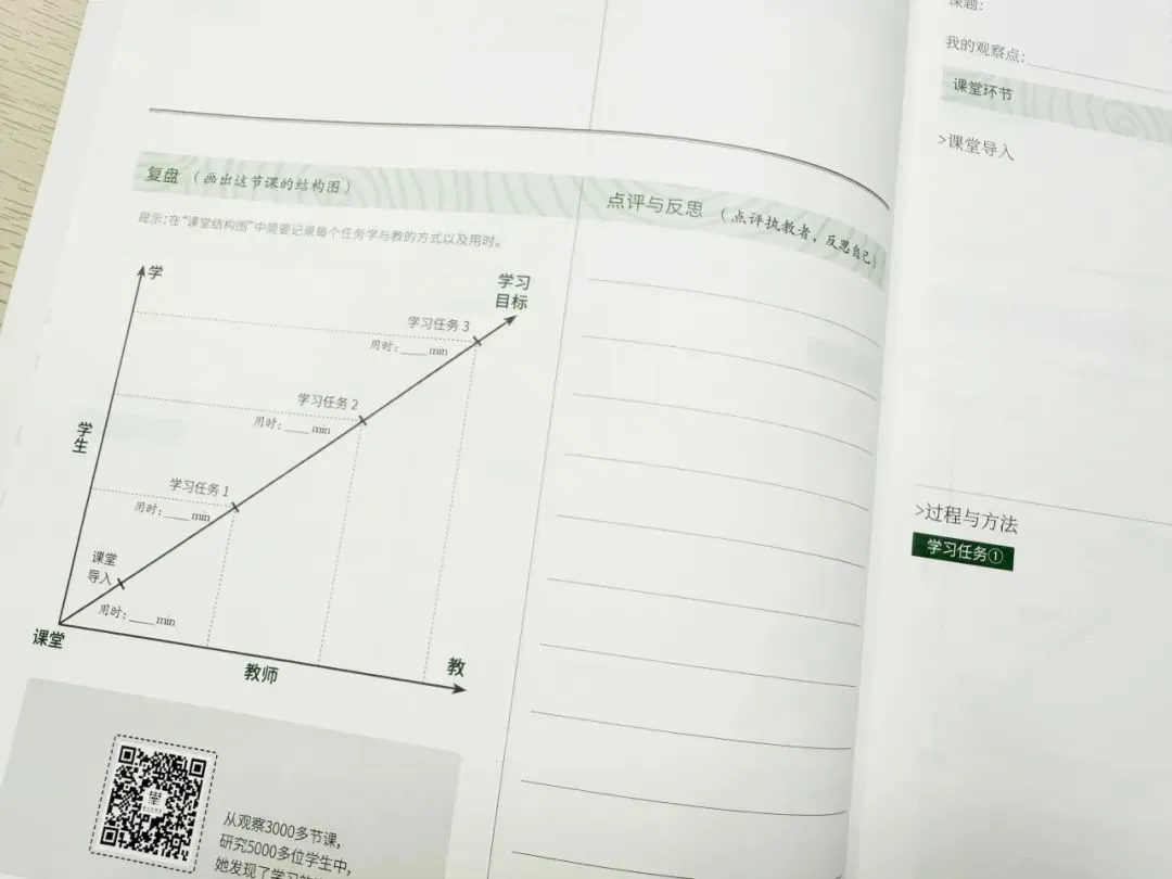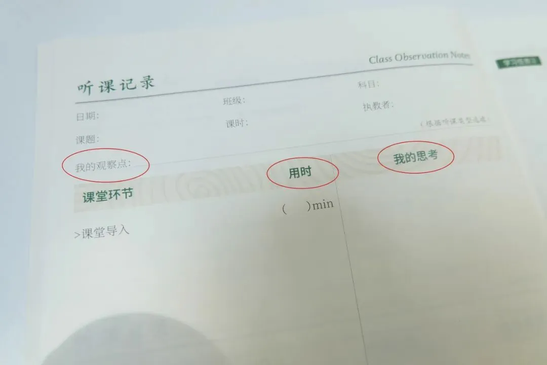 这本听课本自带“观察点预设——时间分配记录——环节衔接分析——改进建议”模块: