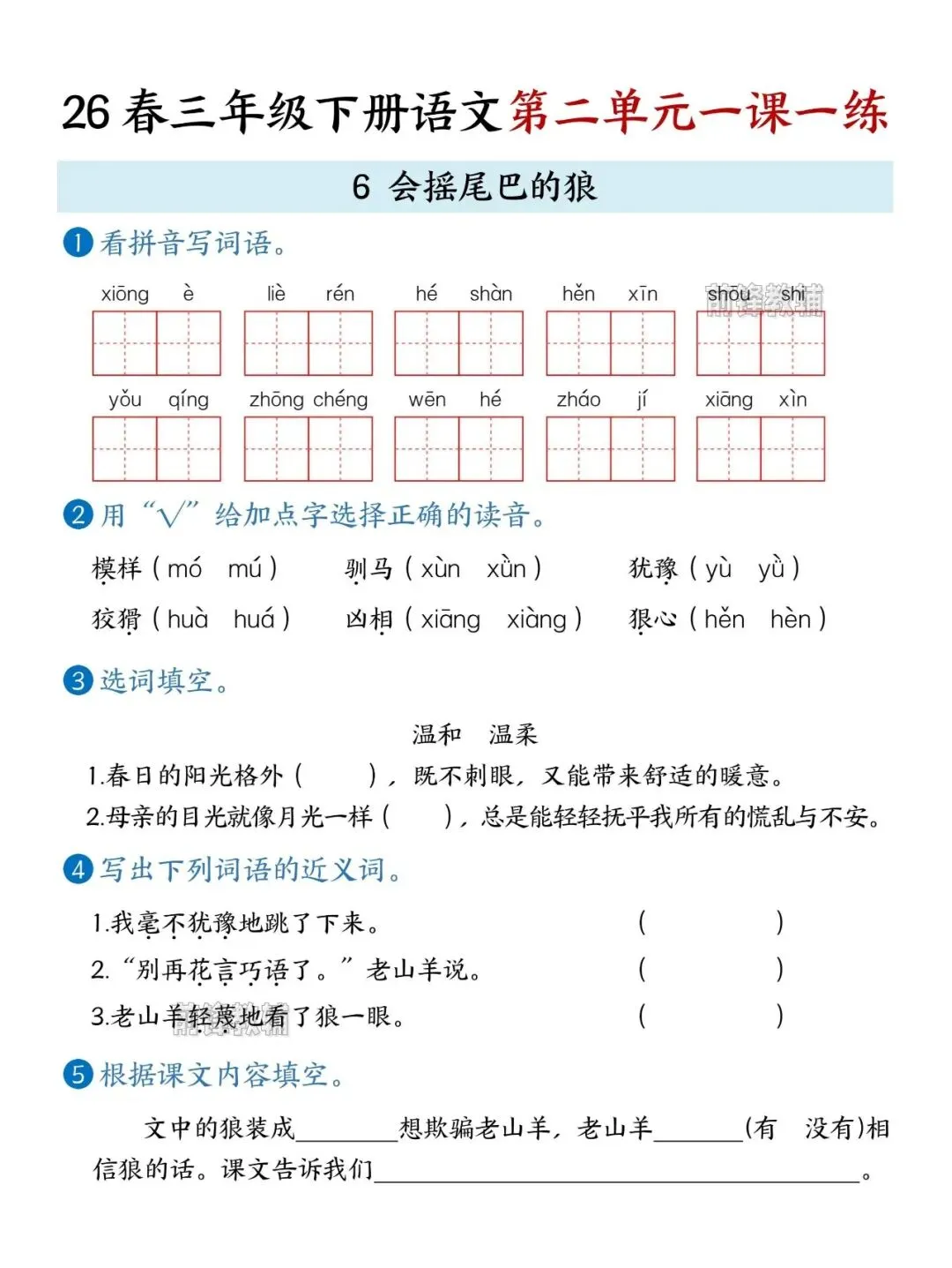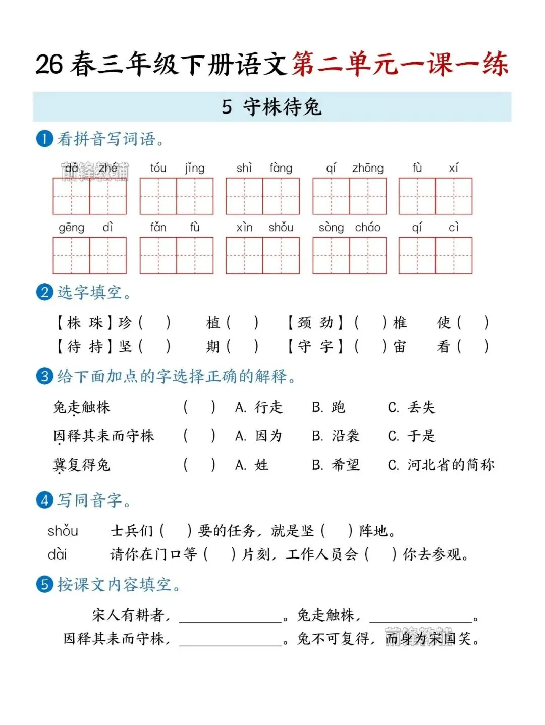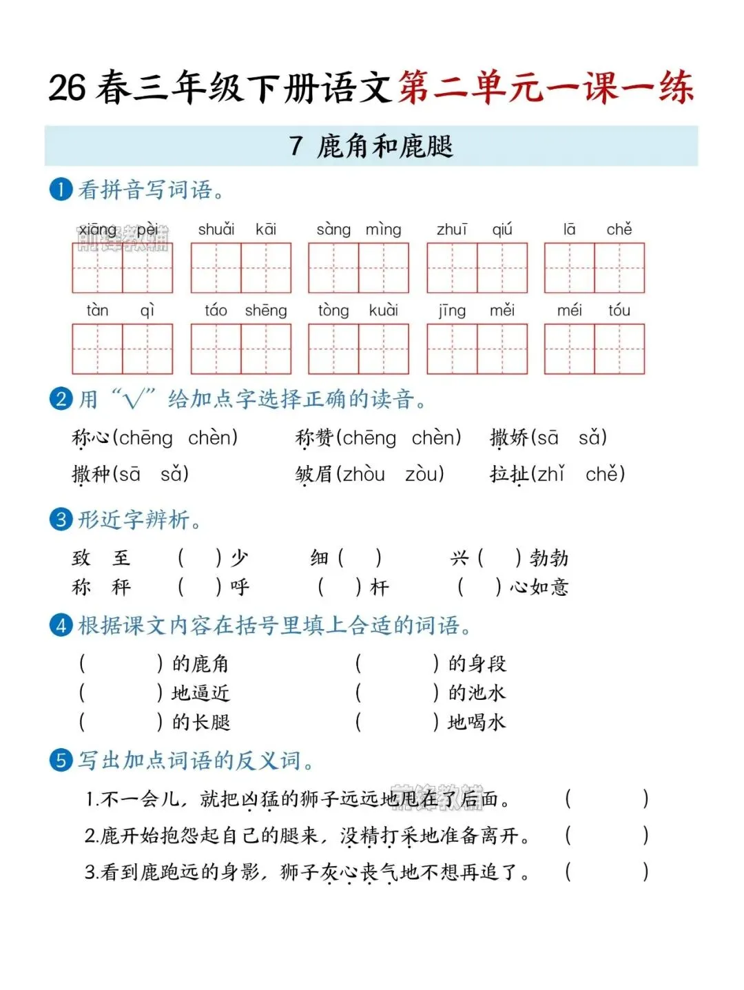 26春三年级下册语文第二单元一课一练(电子版可打印)