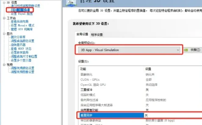 注意:部分旧版驱动中,该选项可能显示为“工作站 – 3D 应用程序”或类似名称,请尽量选择包含“3D应用程序”或“可视仿真”的选项。