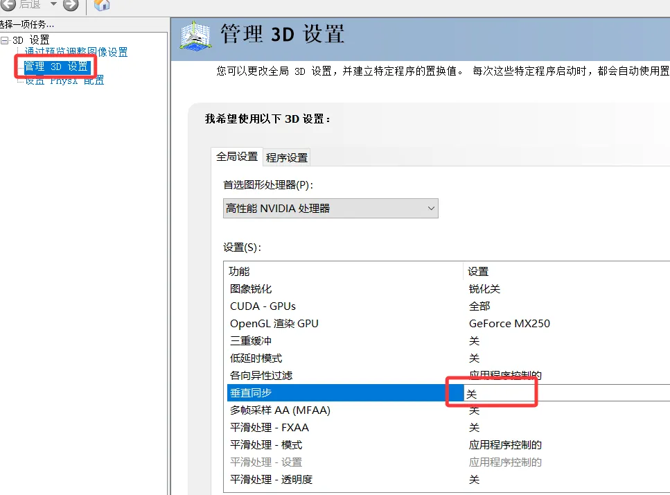 在右侧找到 垂直同步,将其设置为 关闭。