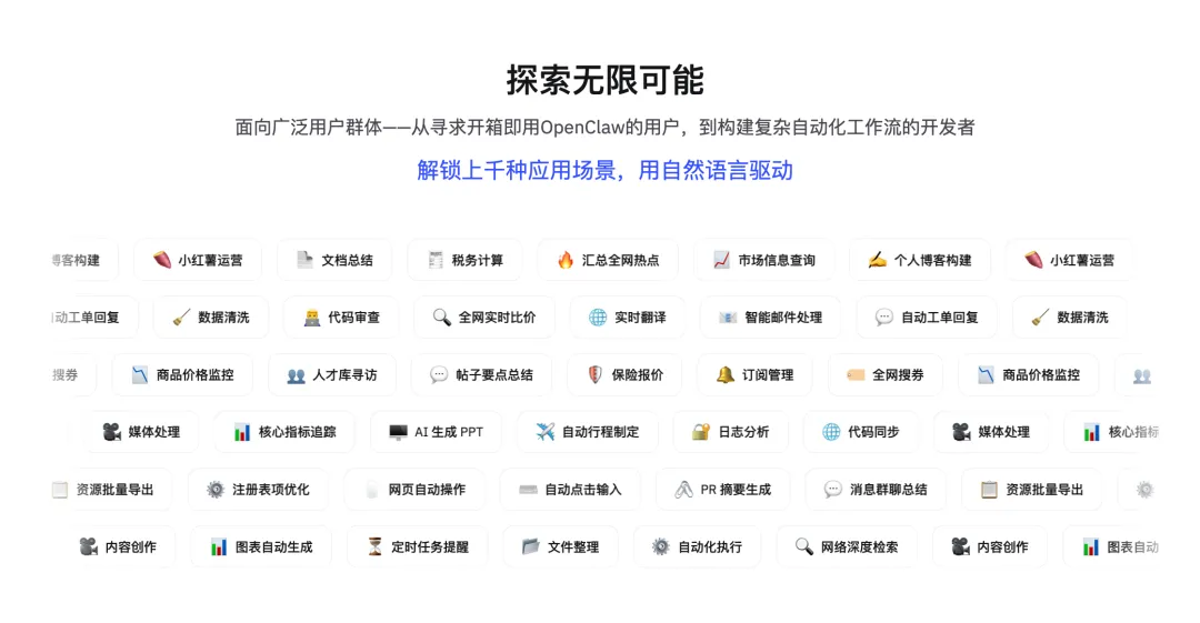 用户可以通过飞书、钉钉、WhatsApp、Telegram、iMessage等聊天软件直接向它发指令,它就能帮你整理文件、修复代码、管理邮件、控制设备。OpenClaw内置持久记忆,能理解你的习惯与上下文,并不断进化,学习新技能。它兼容OpenAI、Anthropic等顶级模型,也支持本地模型部署,灵活可扩展。