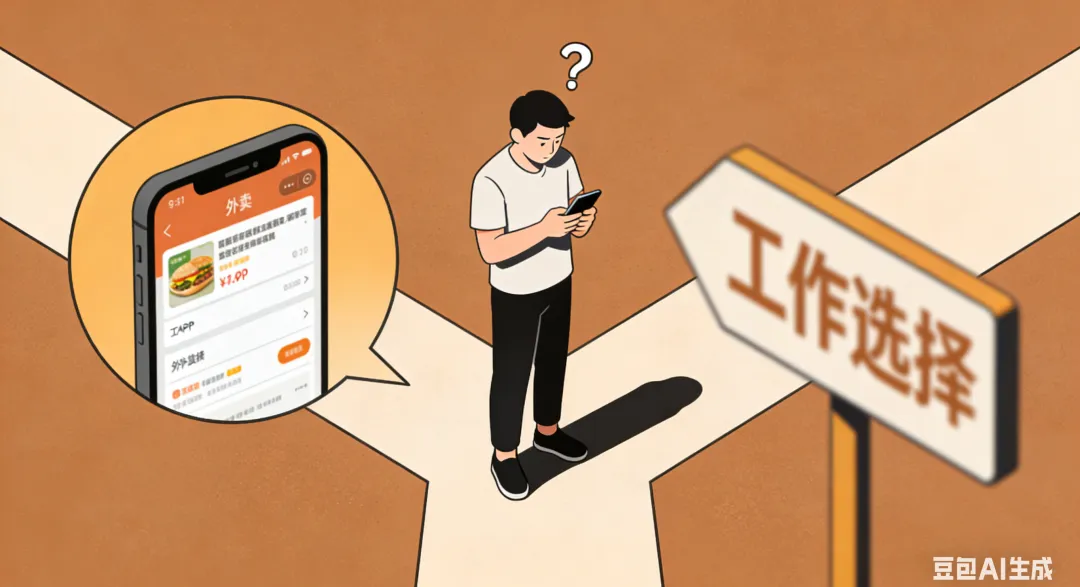 选外卖能翻20分钟,选工作却想着”先做着看”。