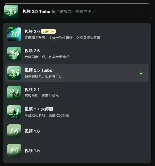 与大多数的生成平台的操作一样,选择模型,当然是推荐使用最新的。