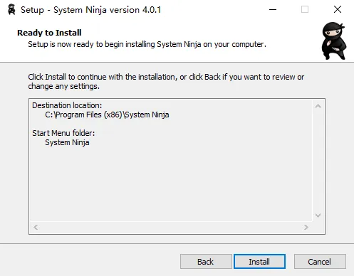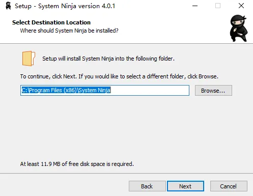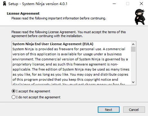 下载完成后先解压文件,打开里面的 “ninja-setup-4.0.1.exe” 程序,一路点下一步,同意安装协议继续。