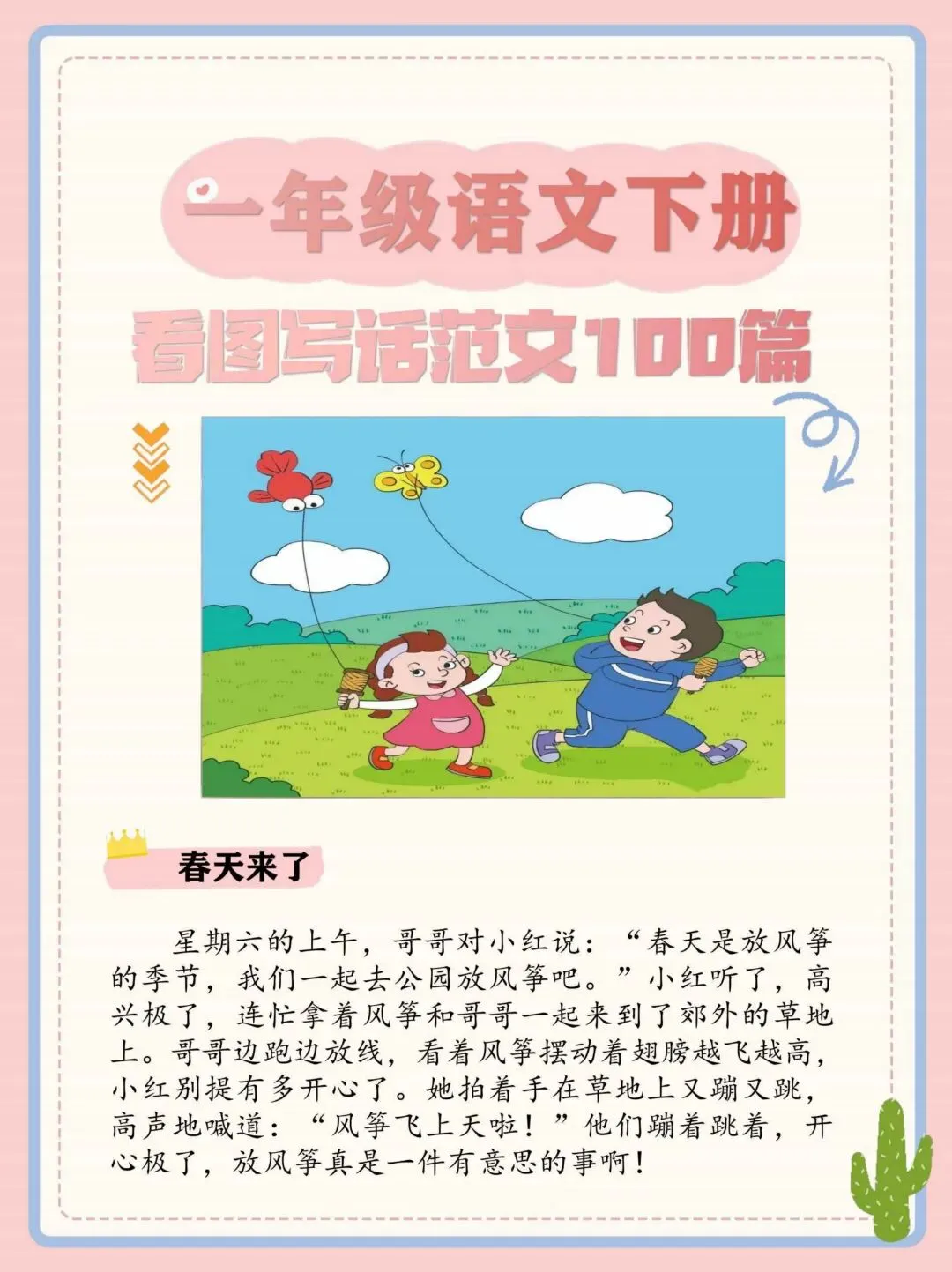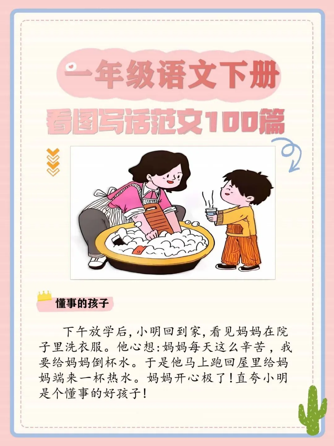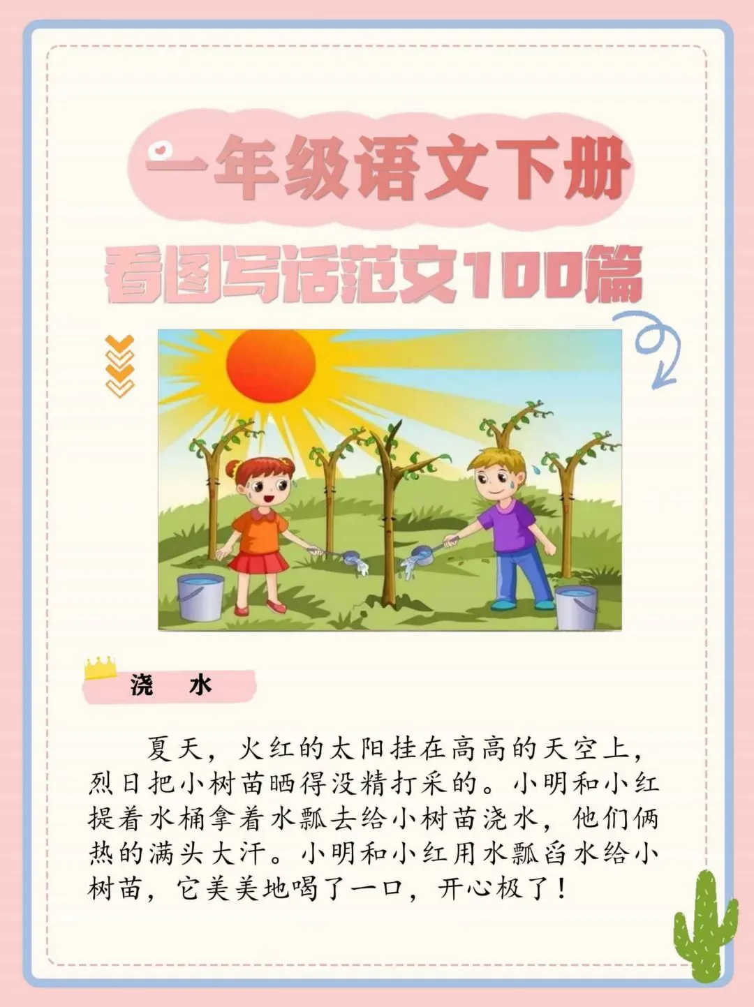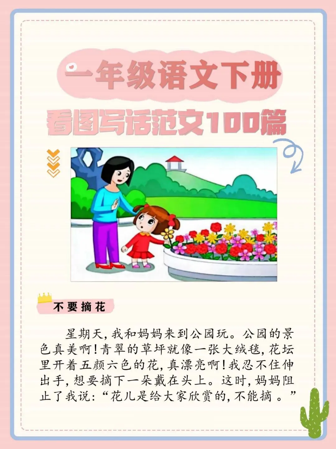 一年级看图写话常考范文100篇!可直接打印 关注我们 领取更多资料 🌈电子版可下载打印,需要的家长抓紧领取一份给孩子打印🖨️吧 (温馨提示:文末有完整电子版领取方式) 领取完整电子版: ①:点一点右下角的“赞”和“在看”,感谢 ②:首先【关注】公众号,再点【发消息】输入编号:39号资料 分享小学拔尖资料 爱润童心,智引成长