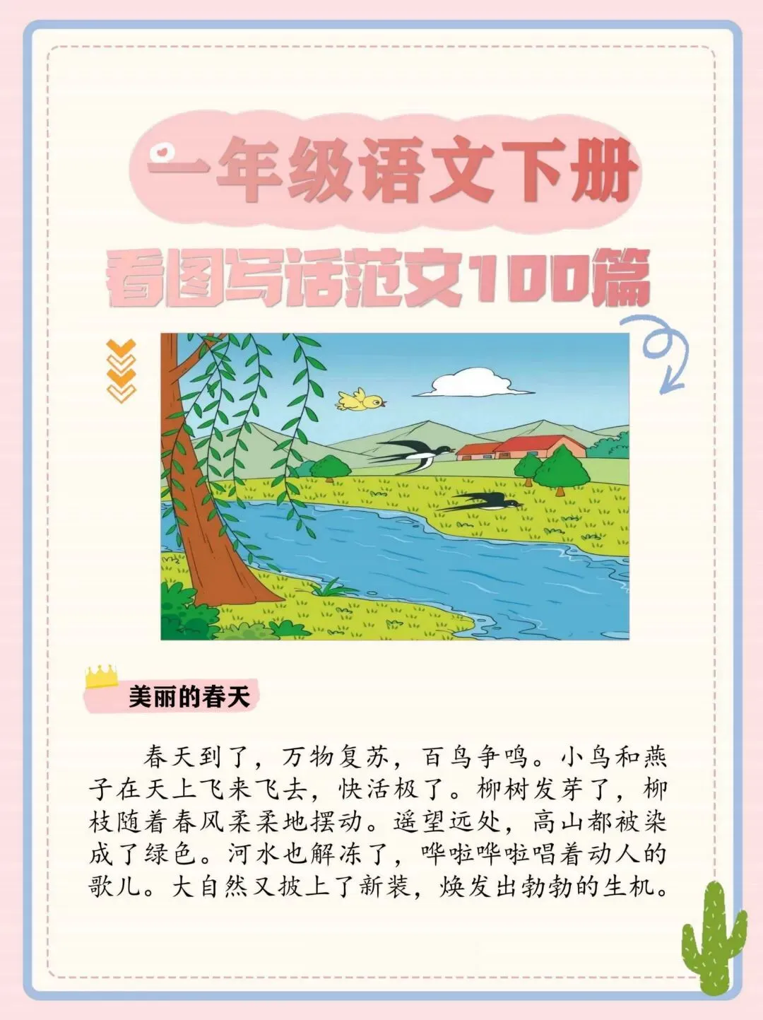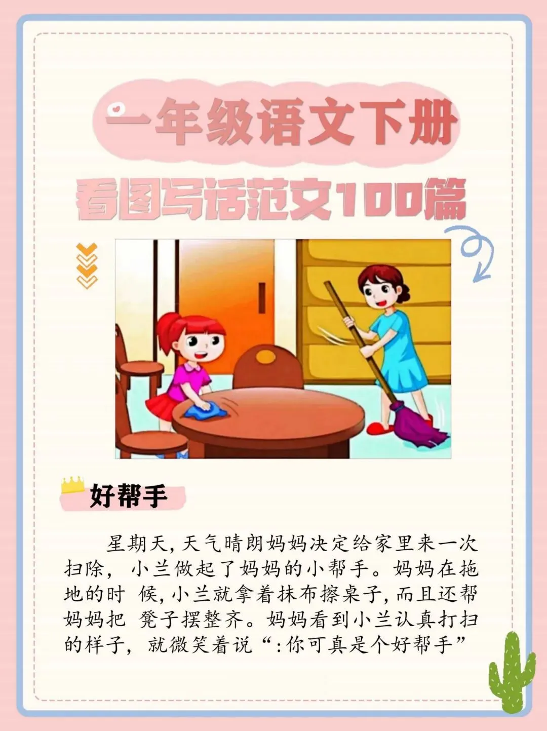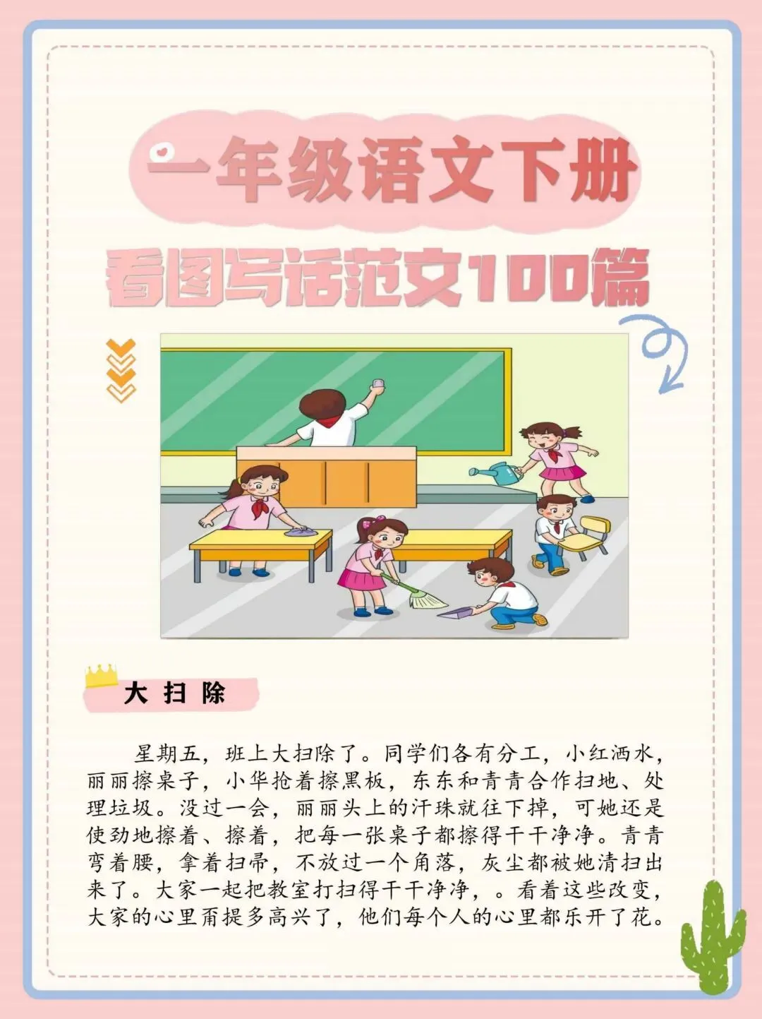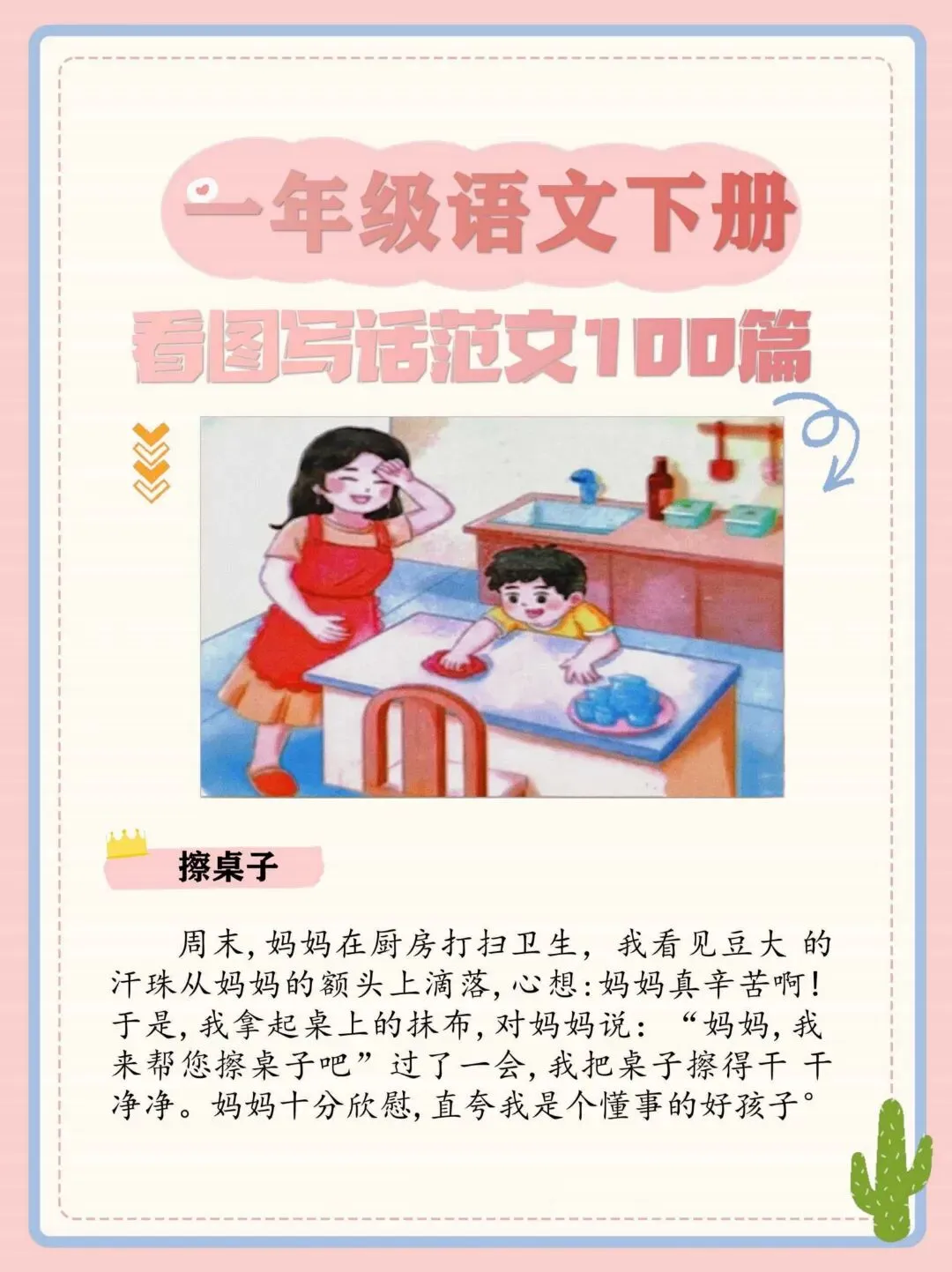 一年级看图写话常考范文100篇!可直接打印 关注我们 领取更多资料 🌈电子版可下载打印,需要的家长抓紧领取一份给孩子打印🖨️吧 (温馨提示:文末有完整电子版领取方式) 领取完整电子版: ①:点一点右下角的“赞”和“在看”,感谢 ②:首先【关注】公众号,再点【发消息】输入编号:39号资料 分享小学拔尖资料 爱润童心,智引成长