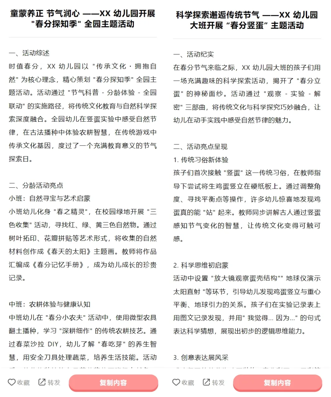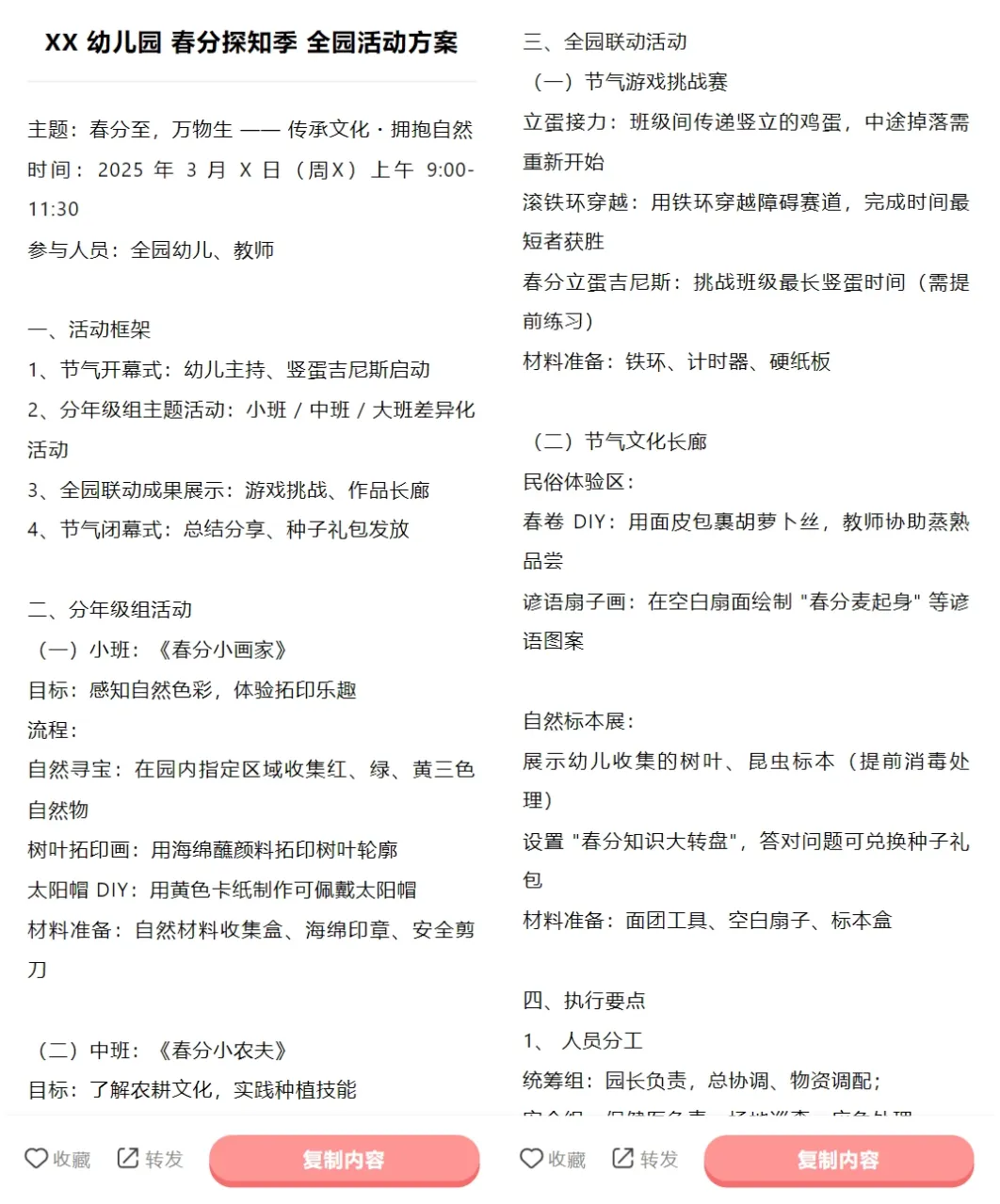 幼儿园春分节气素材合集(包含活动素材、春季食谱、宣传文案)