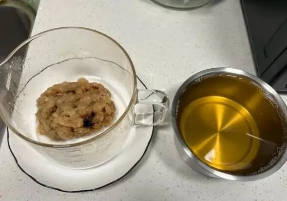 我前后叮了大概20分钟 , 过滤出来 , 晾凉 , 白花花的猪油就好了!猪油渣撒椒盐 , 直接吃 , 绝了 , 炒菜舀一勺 , 整个菜都升级了!