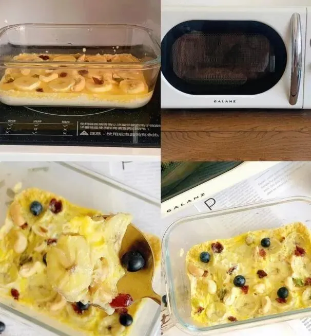 出来就是热乎乎的蛋烤燕麦 , 好吃 , 低卡 , 还顶饱 , 我现在几乎天天早上都这么吃!