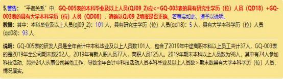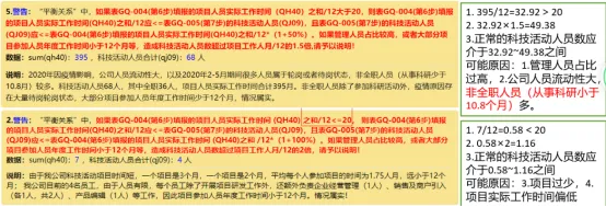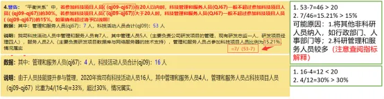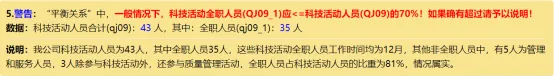 13、科技活动全职人员问题:正确理解该项指标含义,从事科技活动超过10.8个月的才是全职人员,该警告要尽量消除。