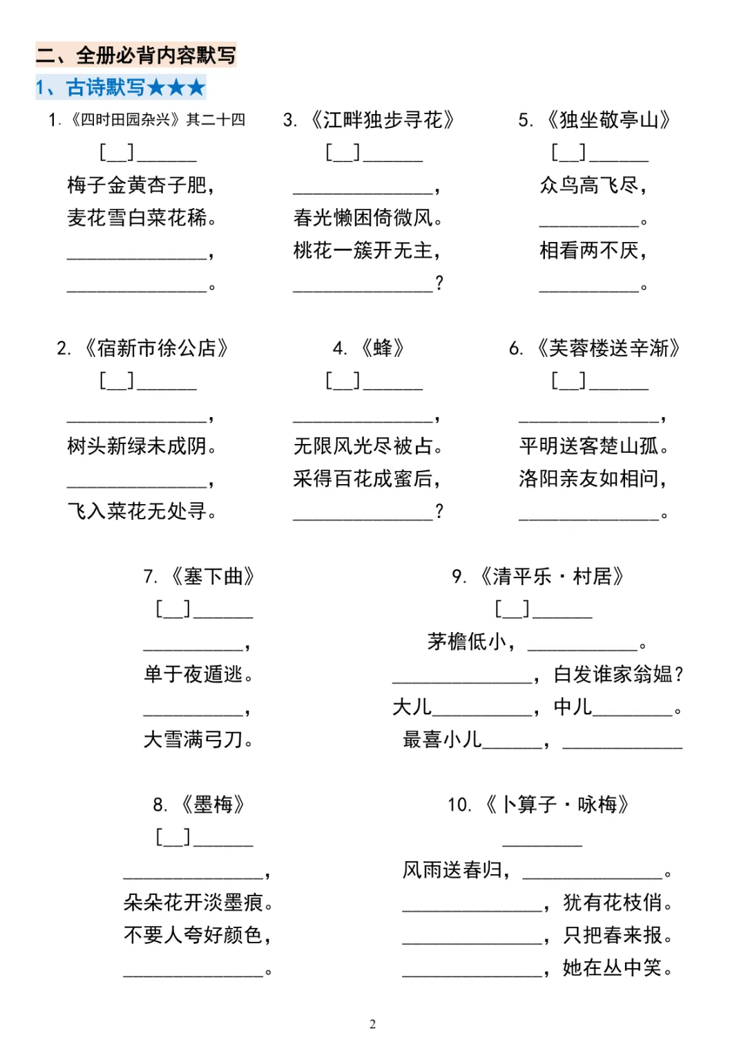 四年级(下)语文 期末复习重点内容电子版PDF,8页,免费下载