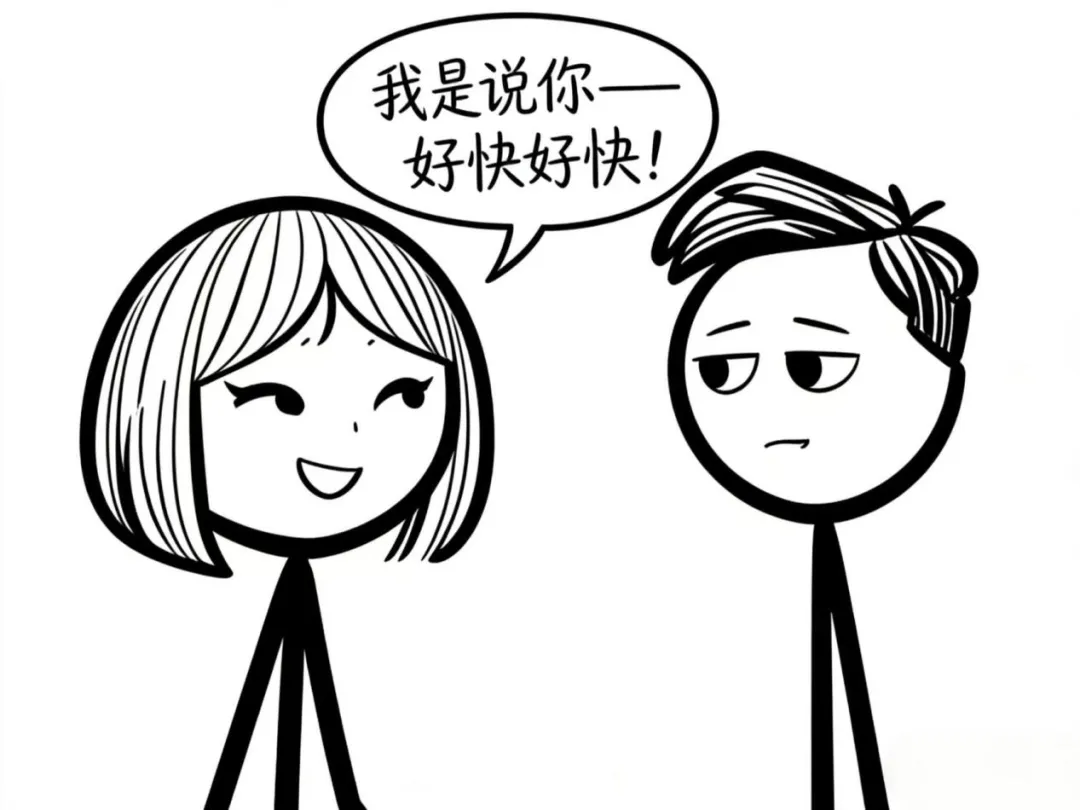 开心漫画;男:老婆 新婚之夜刚过 你对我有啥评价 女:你呀 就像那一把刀 男:嘿嘿 你这是在夸我厉害吧 女:我是说 你好快好快