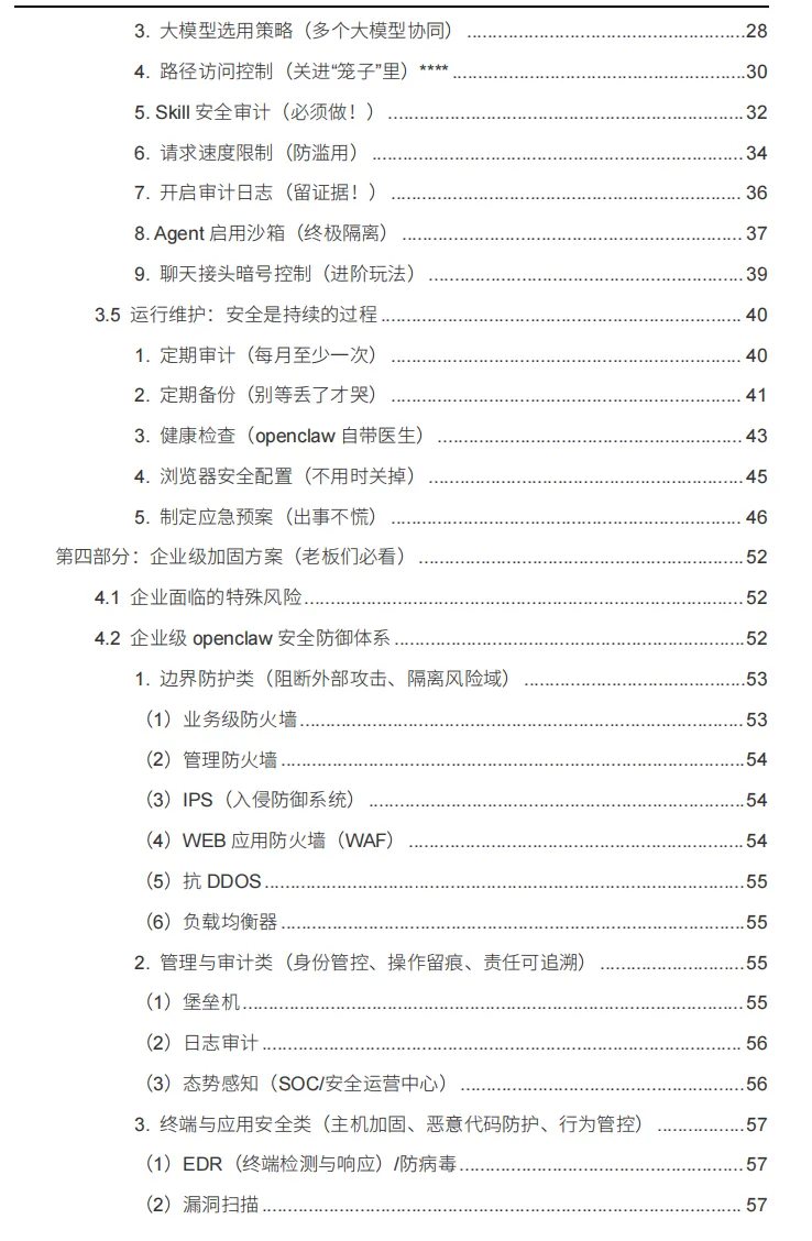 兄弟们,如果你是公司 IT 或老板,这部分认真看!企业用小龙虾,组织的复杂度远高于个人,风险指数级增加。除了上述以应用层为主的安全保障与加固的相关配置外,企业还需要加强整个信息系统的安全配置。