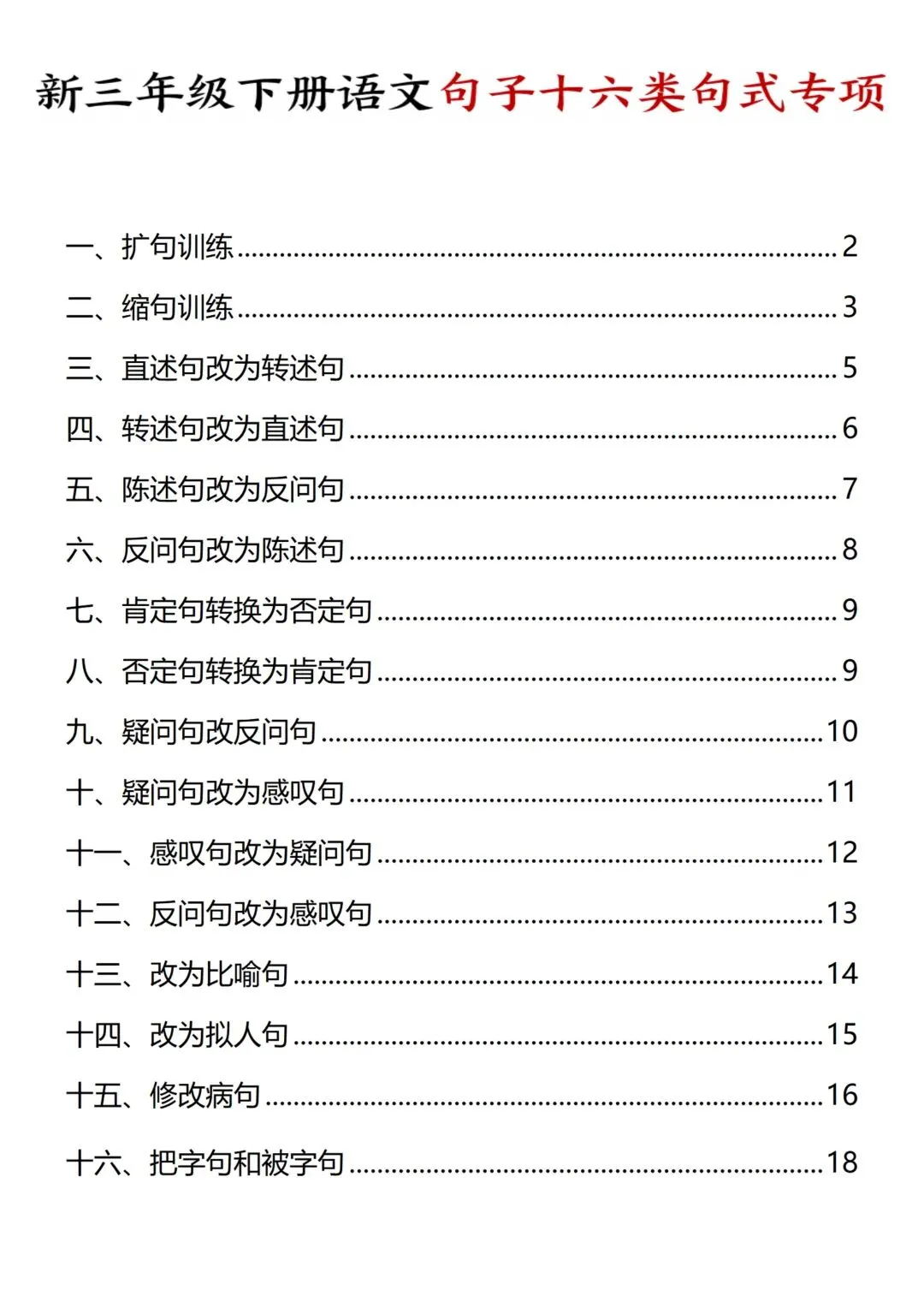 2026春最新版:《三年级语文下册十六种句式专项训练》电子版可打印