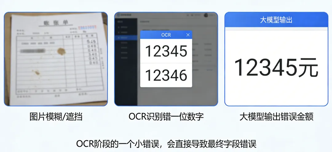 这类错误一旦发生在 OCR 阶段,后面再强的大模型也无法「无中生有」纠正,属于错误传导。