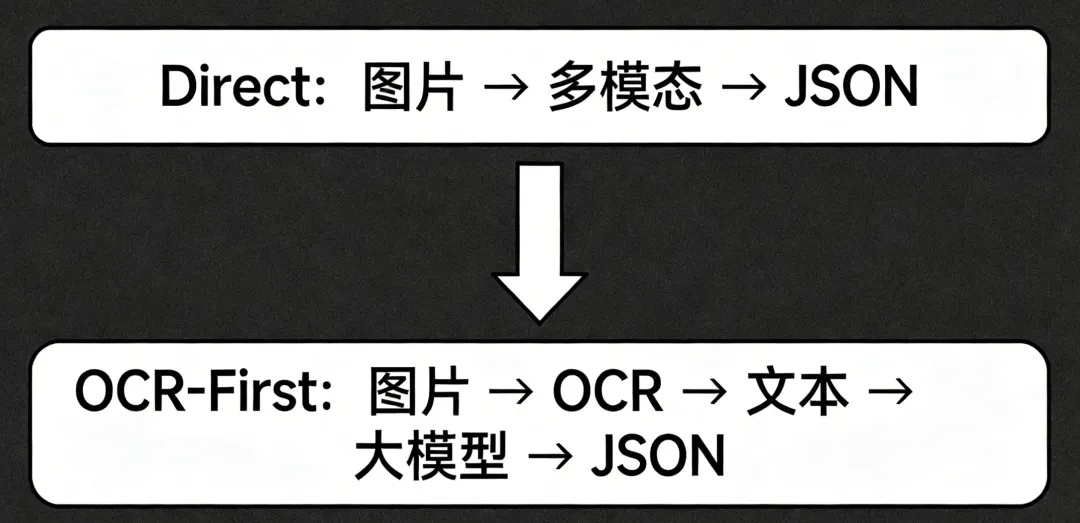 ·怎么办:用同一批图片、同一套 JSON 规范,对比「Direct」和「OCR-First」两条链路,按字段统计准确率;再结合错例集、规则校验和人机协同,把识别率提到可上线水平。