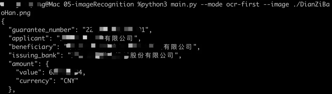 2)python3 main.py –mode ocr-first –image ./DianZiBaoHan.png