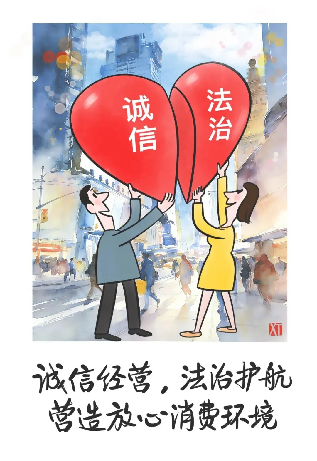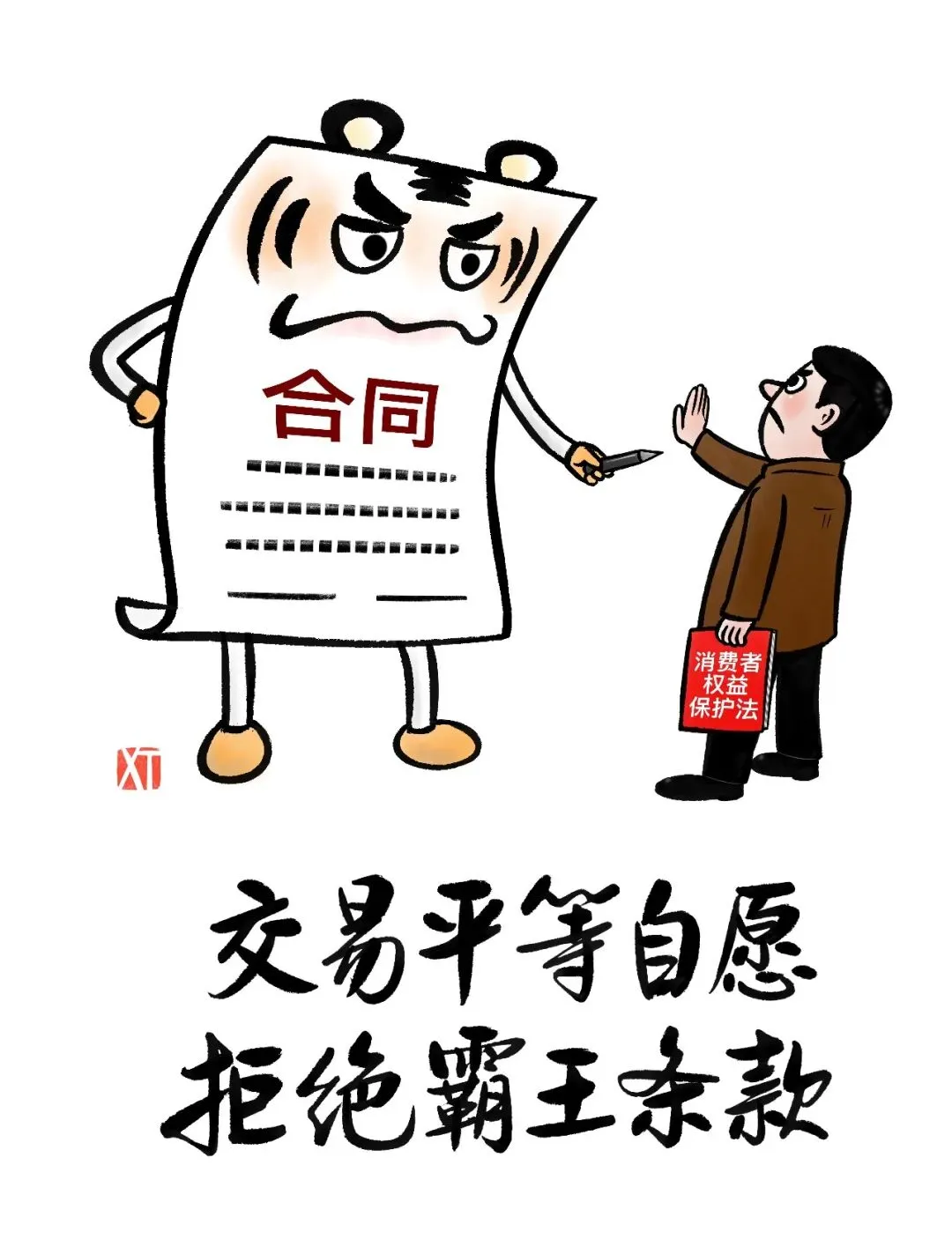 展览一共有我50幅作品。内容上我做了系统策划,涉及消费环境建设、法律维权知识、正确消费理念以及各类消费提醒等。