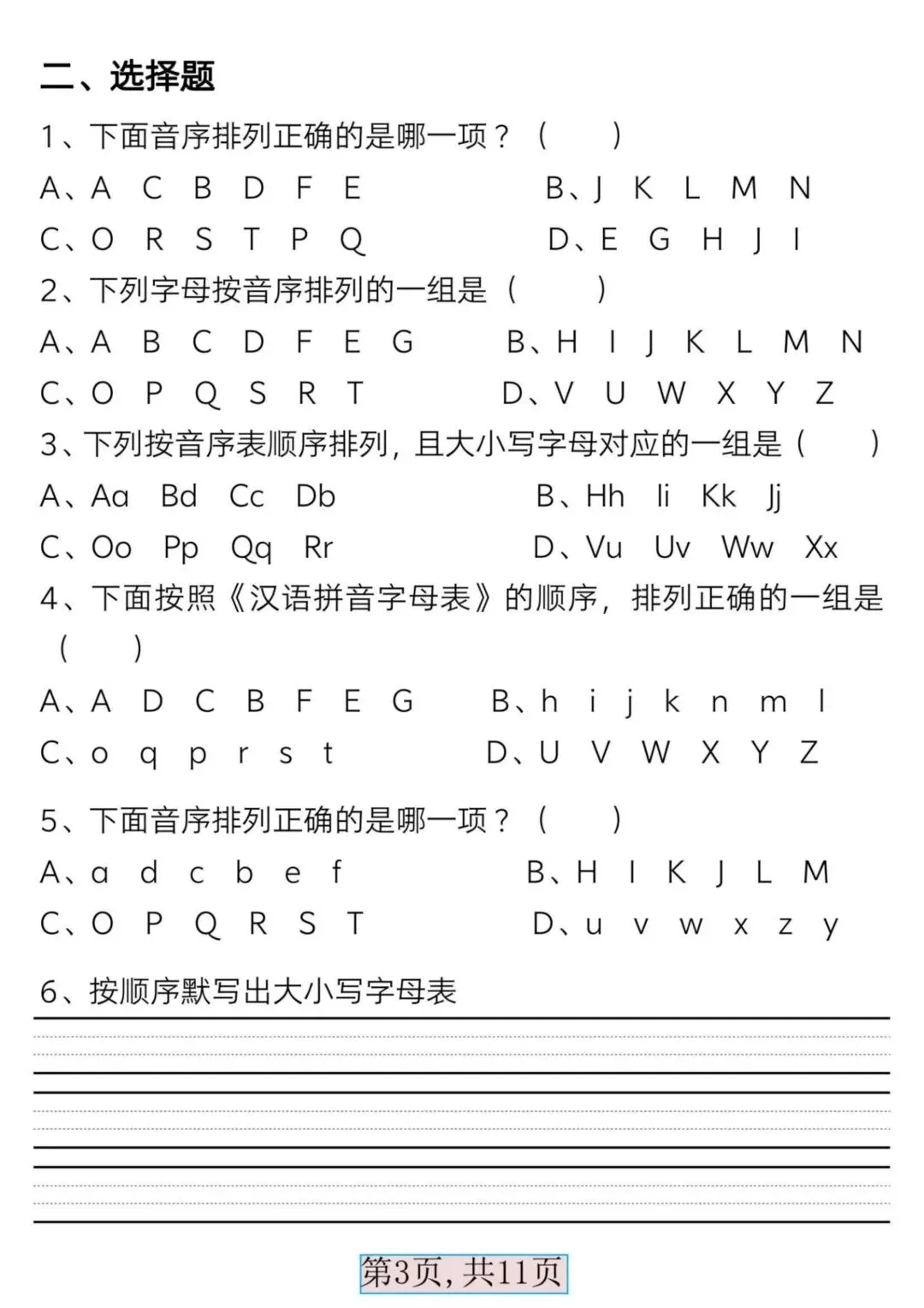 一年级语文下册音序表,完整电子版可打印