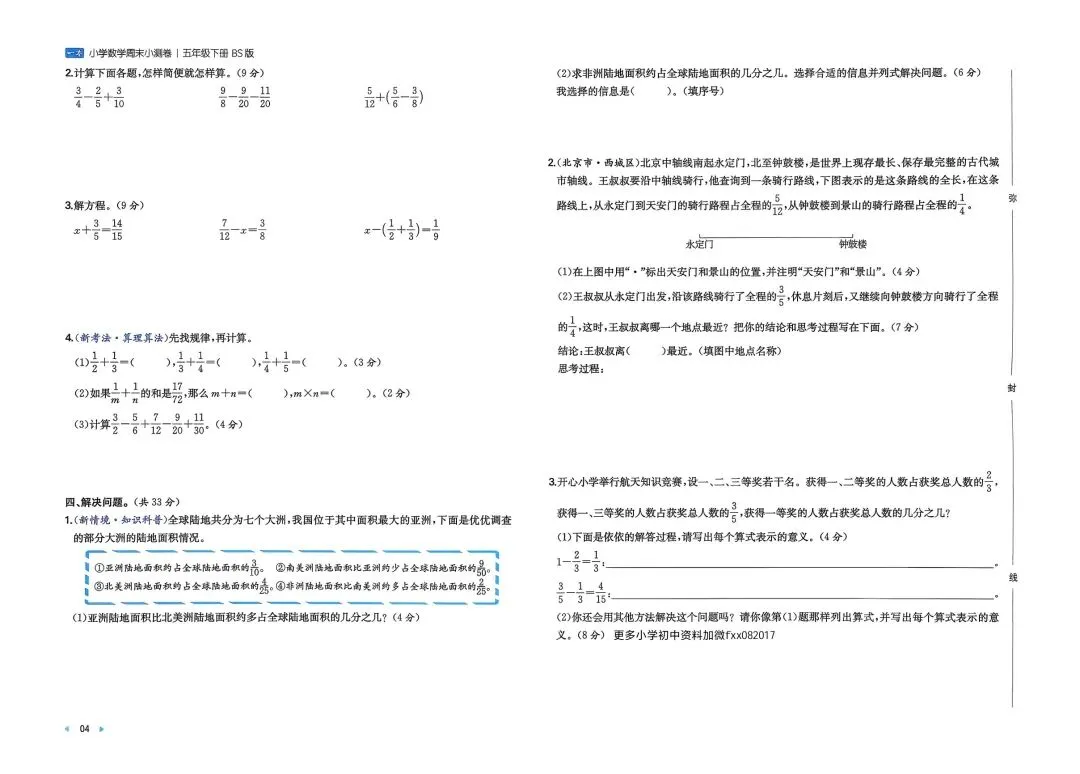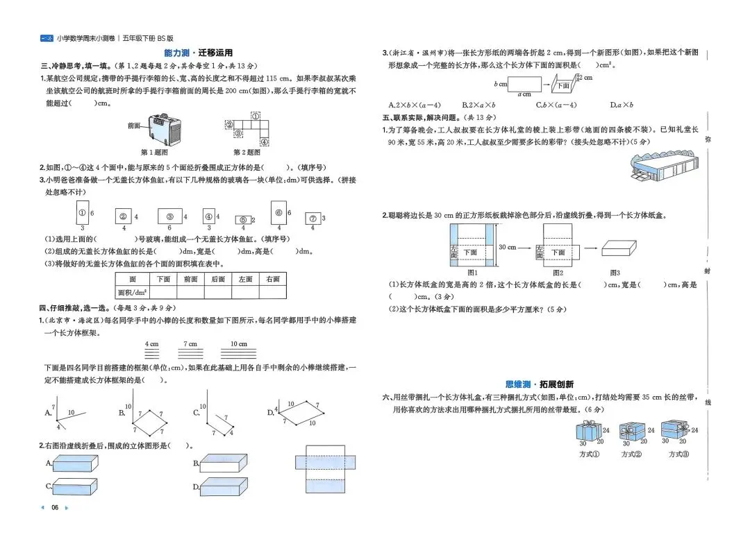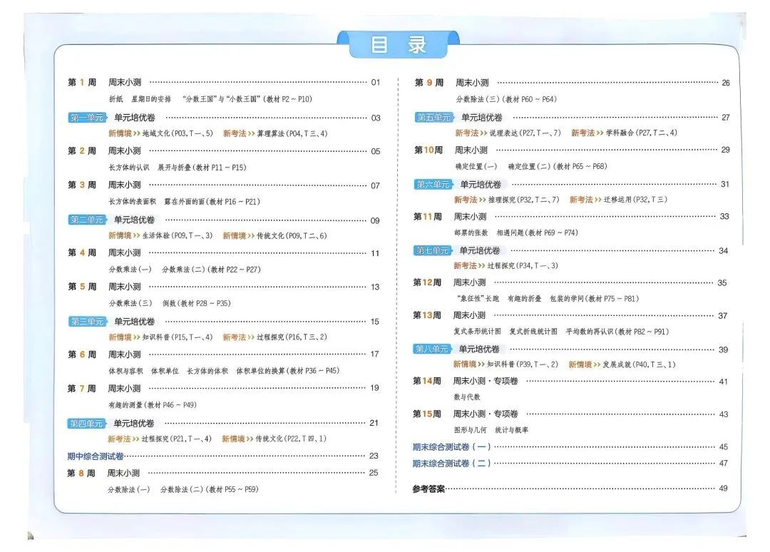 2026春新版五年级下册北师大版数学周末测试小卷+单元培优情境卷+期中期末测试卷,可打印