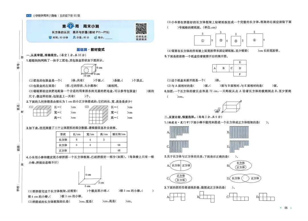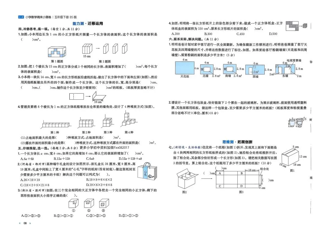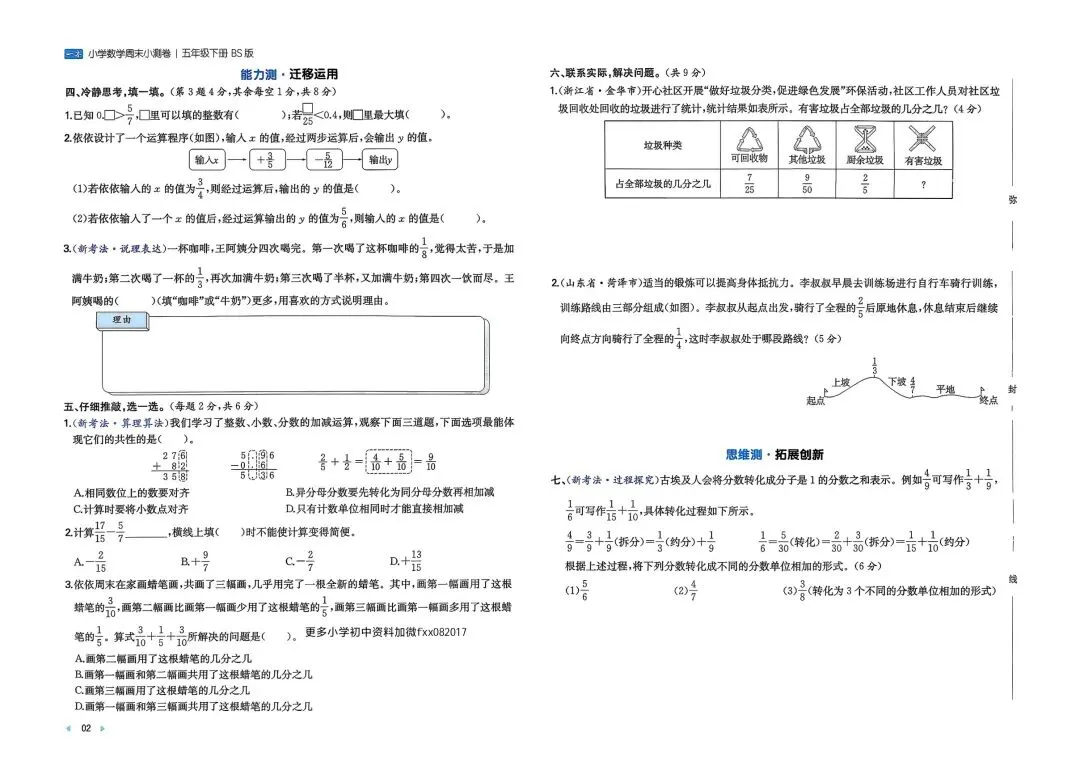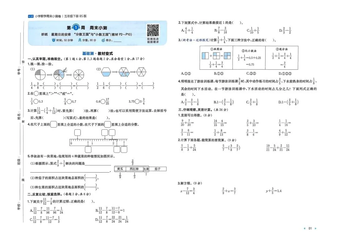 2026春新版五年级下册北师大版数学周末测试小卷+单元培优情境卷+期中期末测试卷,电子版可打印