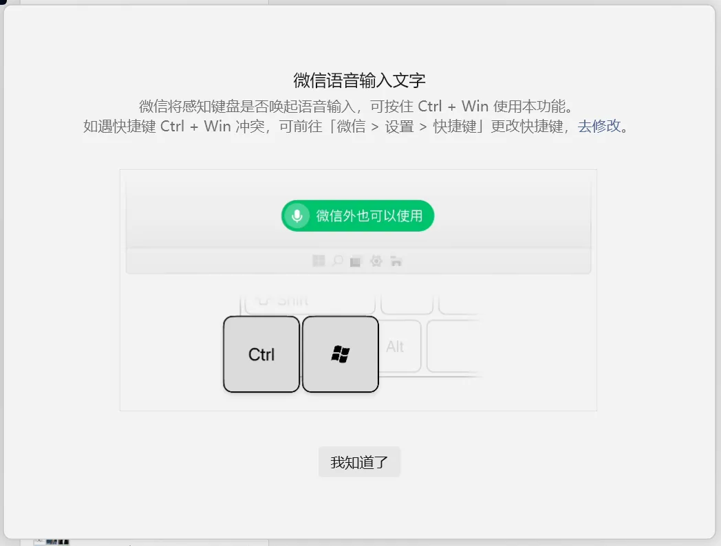 方式一:快捷键唤醒(更便捷),按住Ctrl+Win组合键开始说话,松开按键即可停止转写,文字直接生成在输入框内。 -