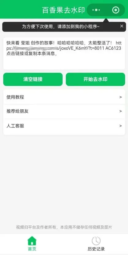 2026年AI视频小工具,让即梦豆包视频无水印保存,超级方便,赶紧收藏使用吧! 2026年的新年期间,如果谁还没有看到过用AI做的搞笑视频,那可真是错过了不少乐趣。但是通过即梦、豆包等AI工具生成的视频,都有一个他们的logo,影响了用户的观看和保存体验。 不少朋友都在期望,有一个小方便可以去除水印就好了。 小编还真给您找到了:百香果去水印 百香果去水印 只需要3步,就可以搞定无logo视频保存啦! 每一步,复制相关视频的链接(各视频平台通用方法) 第二步,搜索:百香果去水印 第三步,一键去水印并保存下载! 您学会了吗?如也可以直接扫码体验哦!