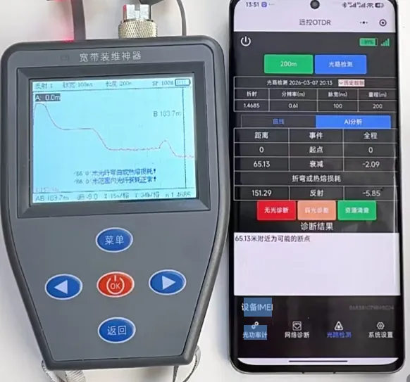 连接测试:将OTDR的光口与被测光纤连接(建议用尾纤转接,避免直接插拔损坏仪器光口),点击“开始测试”,等待测试完成(10km光纤约30秒)。