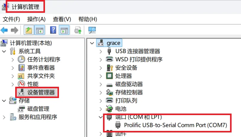 如果不知道是用哪个串口,可以在“我的电脑”—-右键—“管理”,进入到“计算机 管理”界面