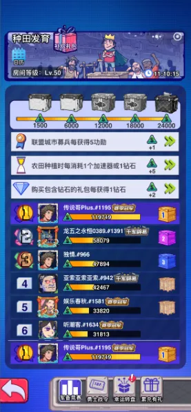 先说周四是因为冲榜时可以为周一的种田榜做好铺垫,让周一冲种田榜更加丝滑。这个榜是很有希望拿榜一的(我75订单,财源滚滚150级加1500,拿了榜一还有5000多加速器)。而且铺垫好了,对周一的榜主力也很大!