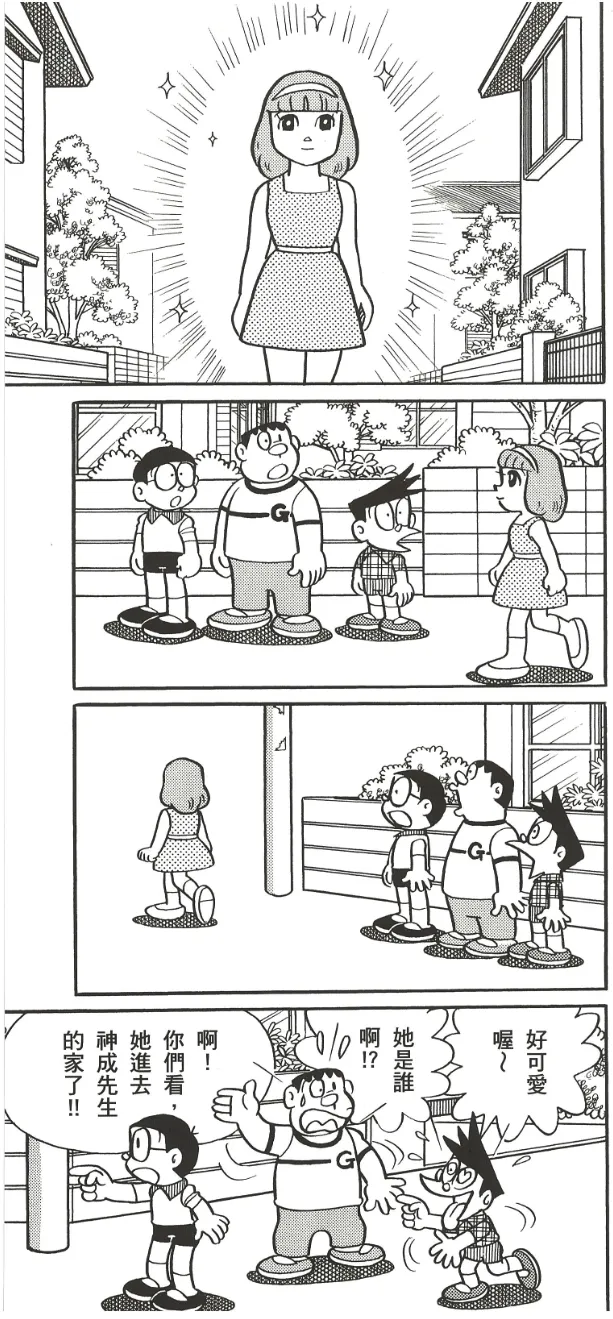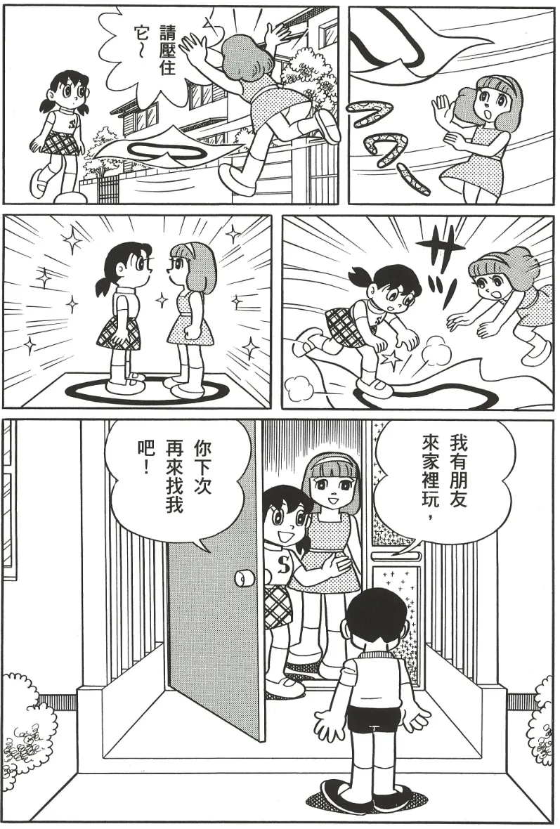 在单行本第38卷中,有一则名为《朋友圈》的短篇故事,故事说的是,大雄想跟神成先生家的亲戚交朋友,于是就向哆啦A梦借来道具“朋友卷”,没想到最后弄巧成拙,让静香和她成了好朋友。