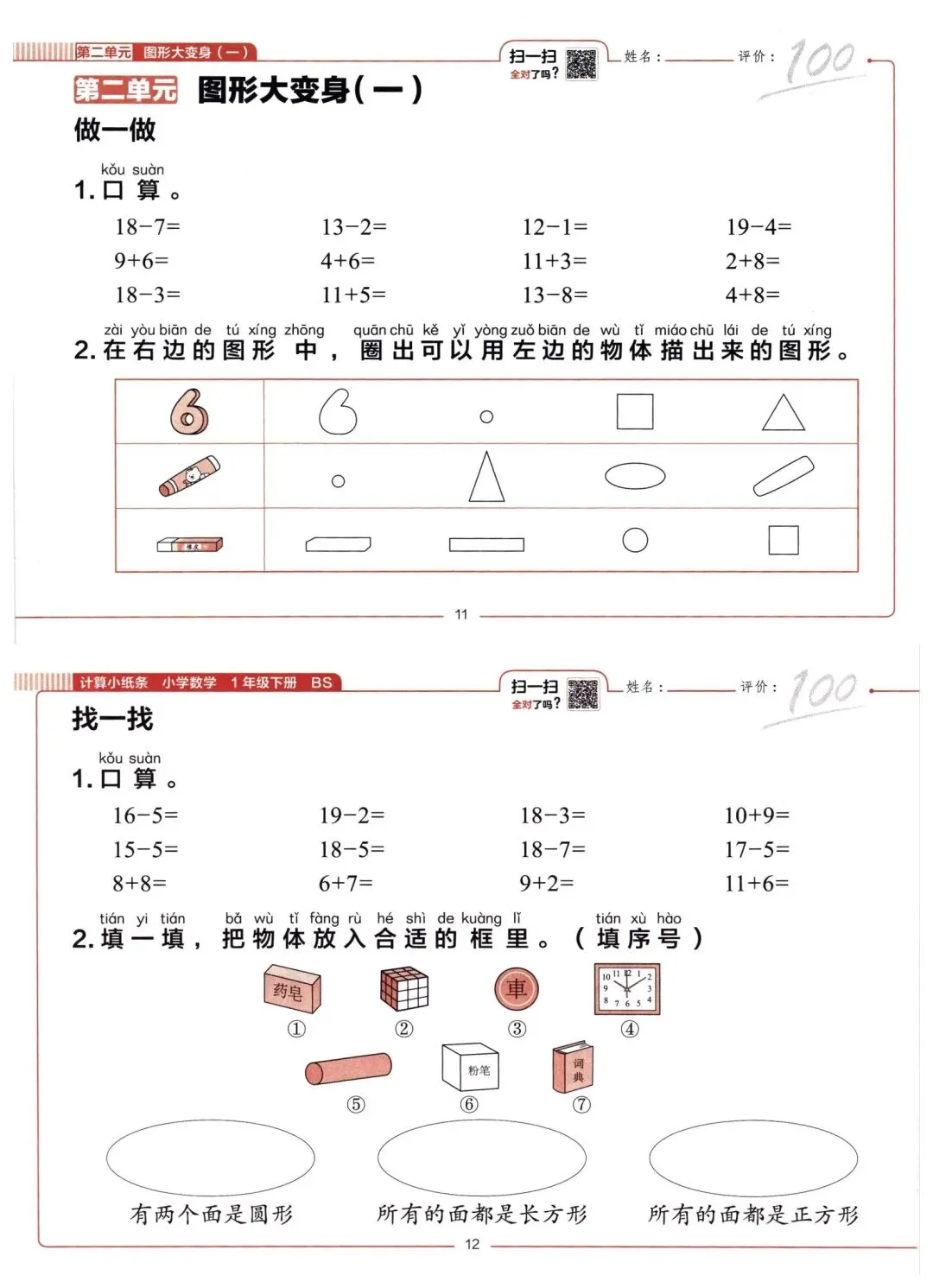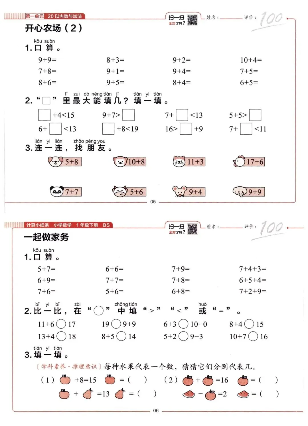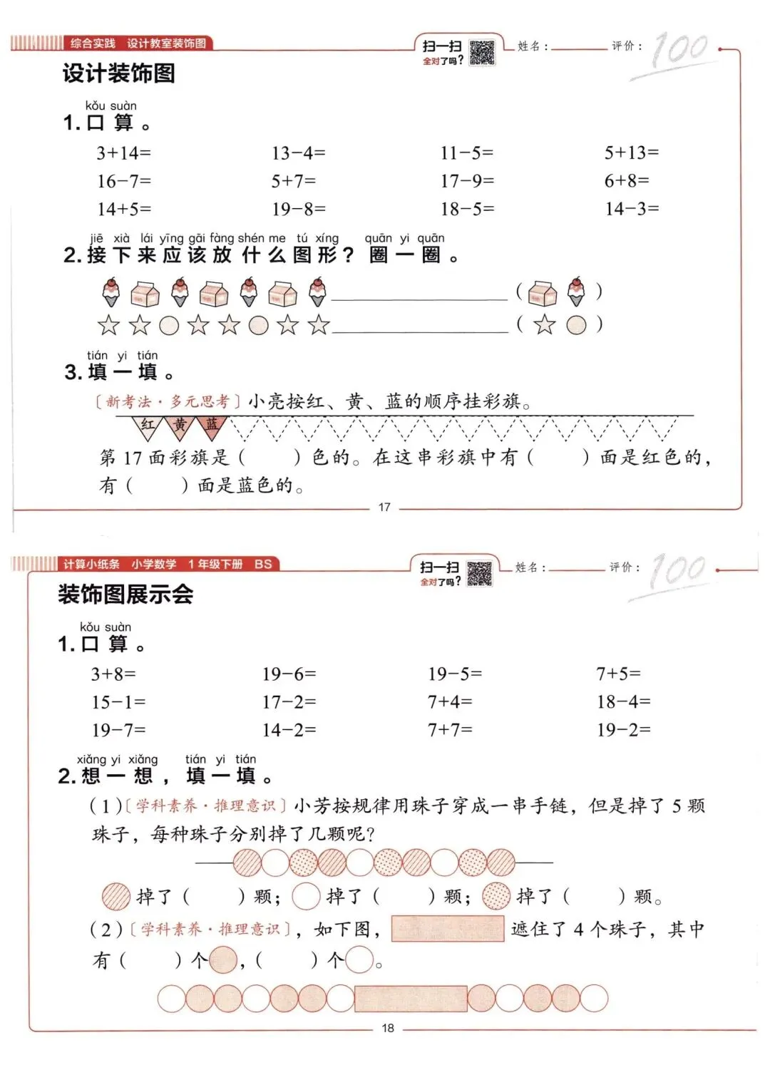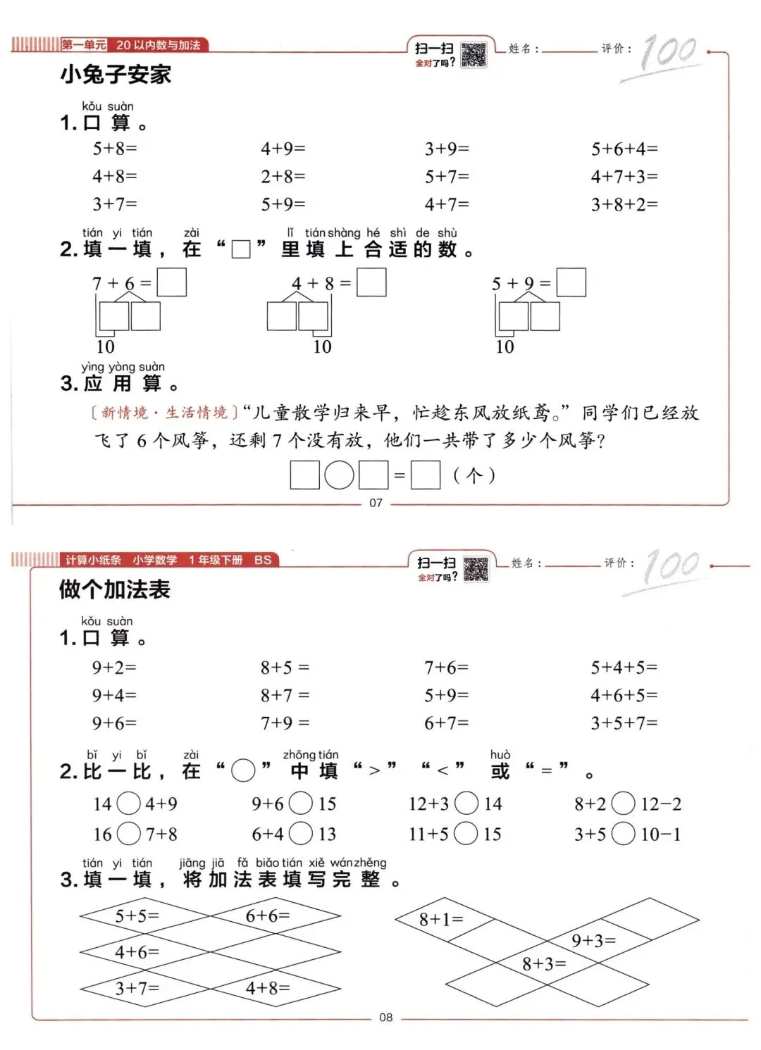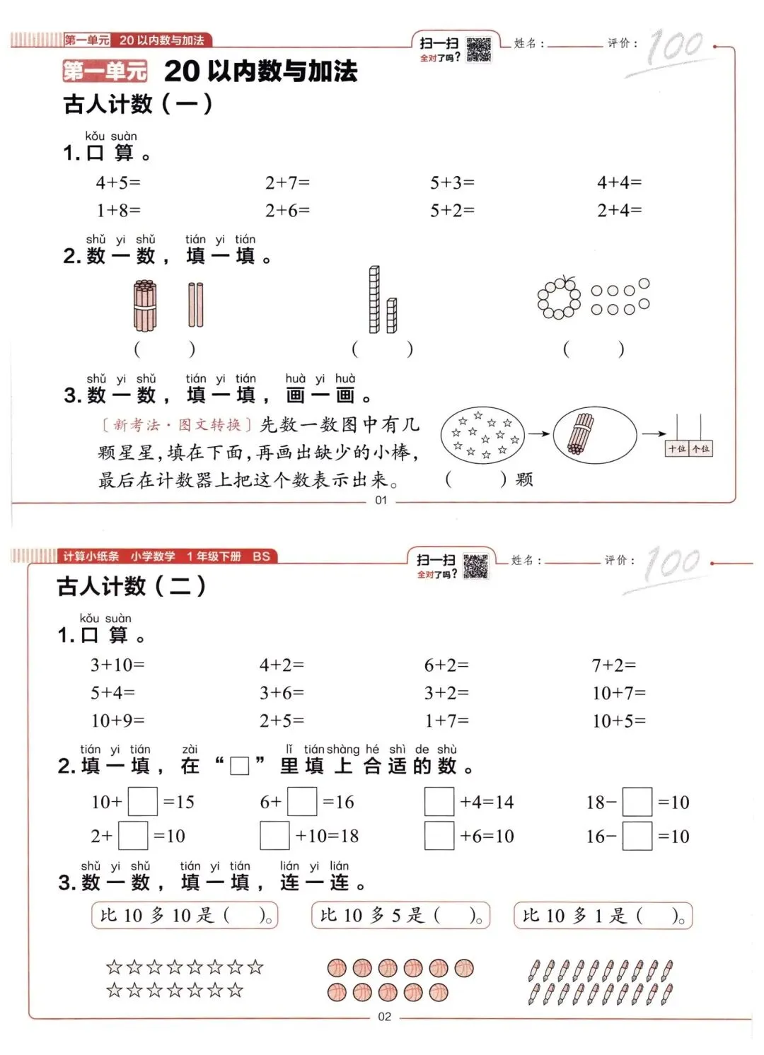 26春一年级下册数学北师大版同步课本一课一练计算小纸条(电子版可打印)