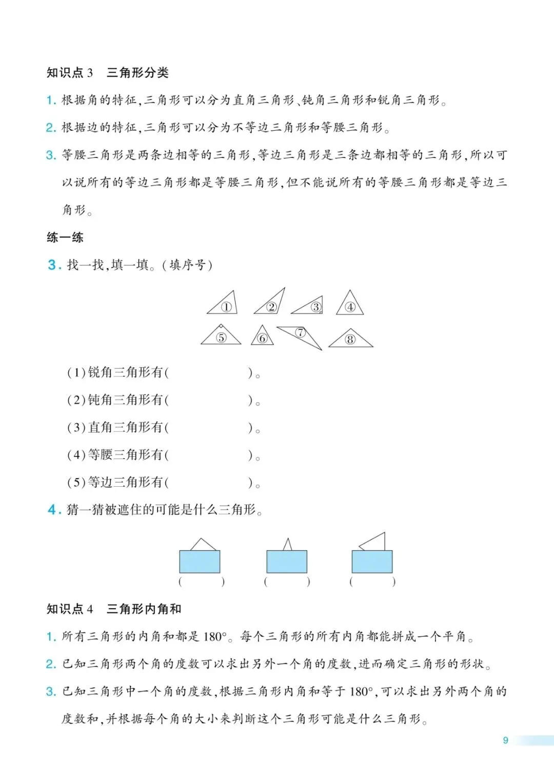 2026春四年级下册通用版数学《三角形和四边形|知识点知识导图+三角形常考题型专项练习》,可打印
