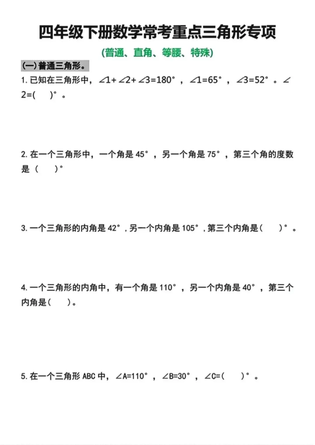 🌟2026春四年级下册通用版数学,三角形和四边形|知识点知识导图+三角形常考题型专项练习,需要的家长朋友抓紧领回去,给孩子练起来吧💪!
