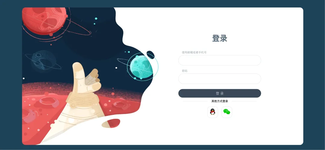 <!DOCTYPE html><htmllang="en"><head><metacharset="UTF-8"><metahttp-equiv="X-UA-Compatible"content="IE=edge"><metaname="viewport"content="width=device-width, initial-scale=1.0"><title>鹏魔王</title><linkrel="stylesheet"href="style.css"></head><body><divclass="box"><divclass="content"><divclass="login-wrapper"><h1>登录</h1><divclass="login-form"><divclass="username form-item"><span>使用邮箱或者手机号</span><inputtype="text"class="input-item"></div><divclass="password form-item"><span>密码</span><inputtype="password"class="input-item"></div><buttonclass="login-btn">登 录</button></div><divclass="divider"><spanclass="line"></span><spanclass="divider-text">其他方式登录</span><spanclass="line"></span></div><divclass="other-login-wrapper"><divclass="other-login-item"><imgsrc="./asset/QQ.png"alt=""></div><divclass="other-login-item"><imgsrc="./asset/WeChat.png"alt=""></div></div></div></div></div></body></html>