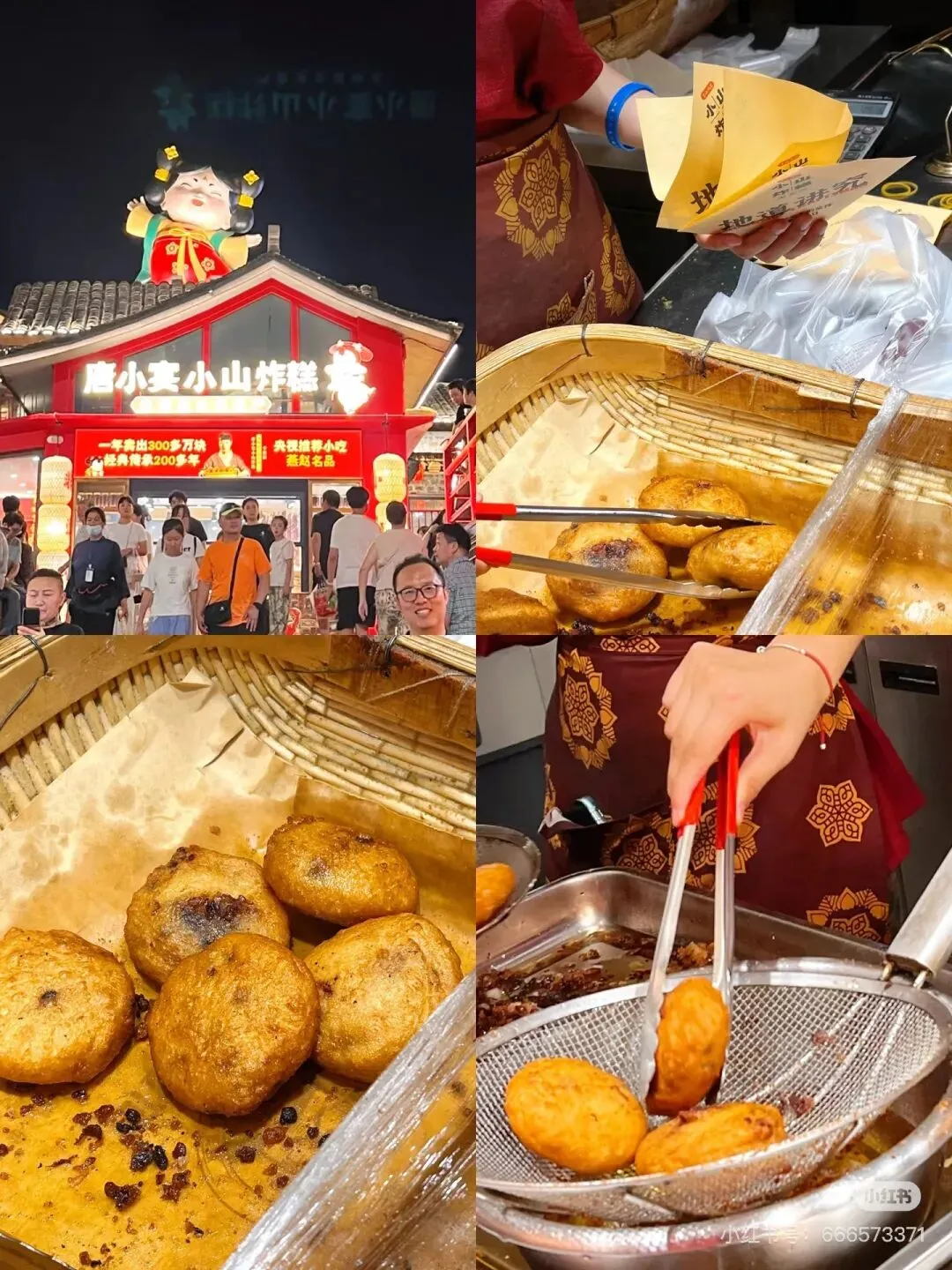 🌟 3💰一个的大炸糕,炸的外壳又香又脆!豆沙馅会流心,记得趁热吃但小心烫嘴哦!