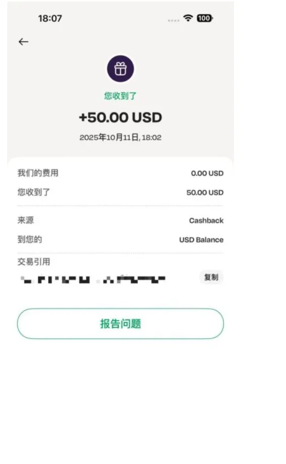 汇款收到后,$50 奖励也是秒到,赞效率!