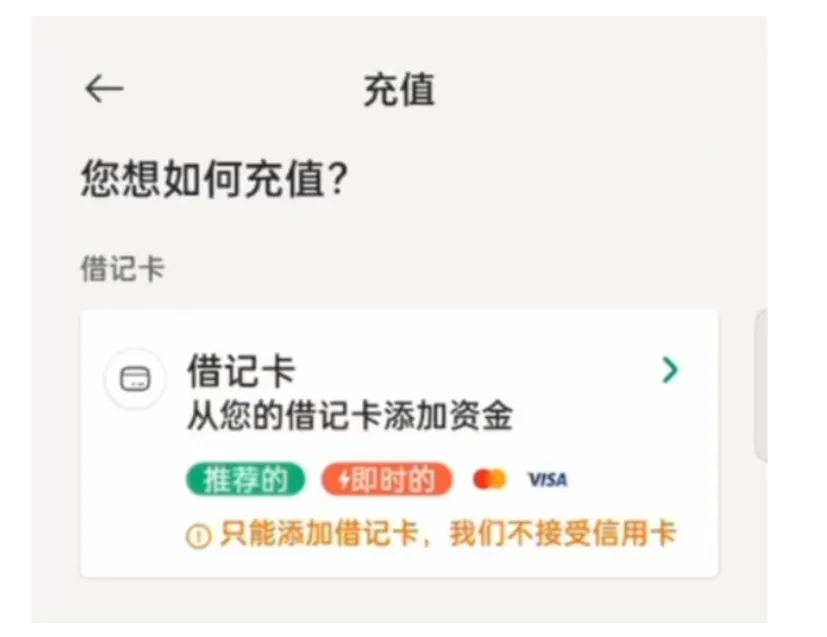 前面介绍过这个 app 并不是银行,所以需要先把资金从银行充值到 APP 中,然后再进行汇款。目前添加资金只能通过 Debit Card,或者绑定 Debit Card 的 Apple Pay 进行,只支持 Visa 和 Master Card。这里提一下,如果你有带返现的 debit card 那就很不错了。相当于汇款还能多获取一笔返现。