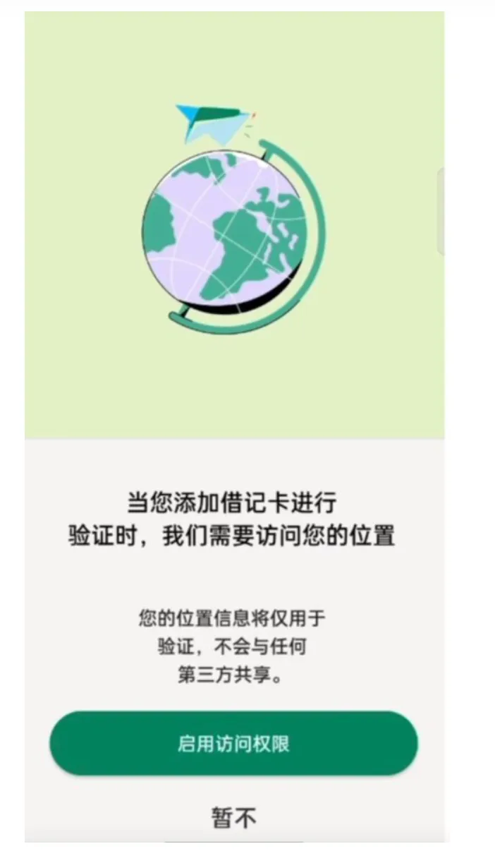 添加卡时同样需要定位你的位置,减少诈骗和盗卡。这种验证还是第一次见,还是做的挺细致的,可能这种国际汇款的诈骗挺多的吧