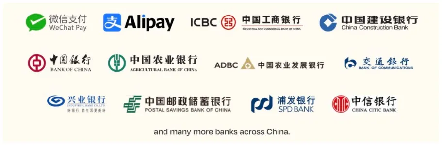 如果汇款到中国的话,也支持支付宝和微信的实时到账,也支持国内很多的银行账户。