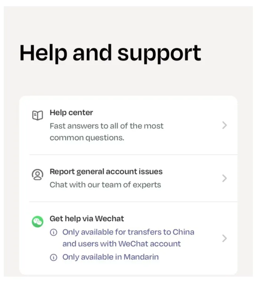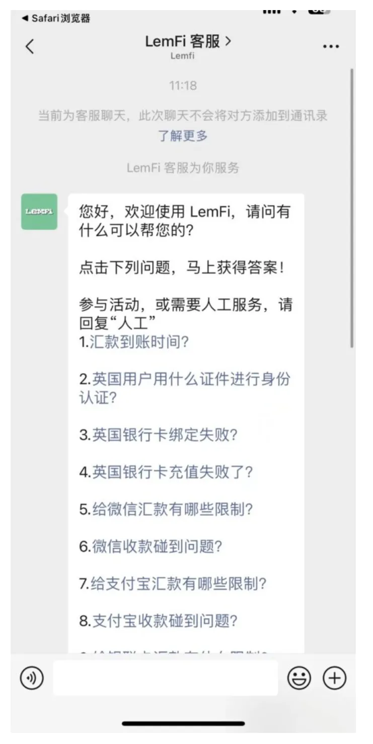 Lemfi 还提供微信中文客服,在 help and support 可以自动跳转。