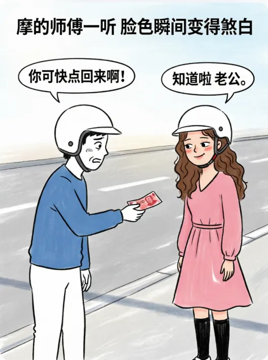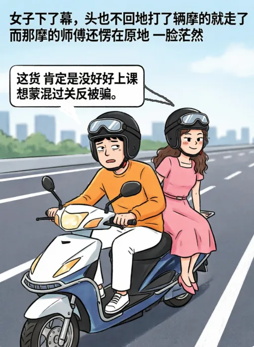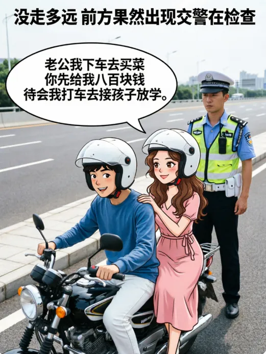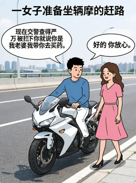 趣味漫画:一女子坐了辆摩的赶路.师傅:万一被交警拦,你就说你是我老婆.没走多远还真被拦