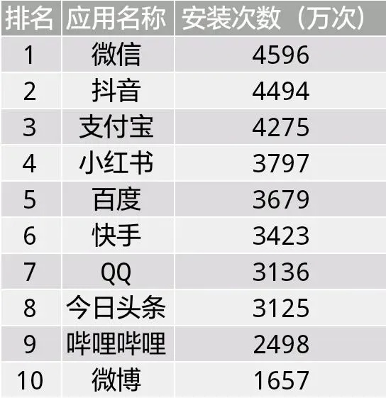 QQ、B站等圈层化App依赖特定用户群体,安装量受受众范围限制;微博则因使用场景低频,排名靠后。