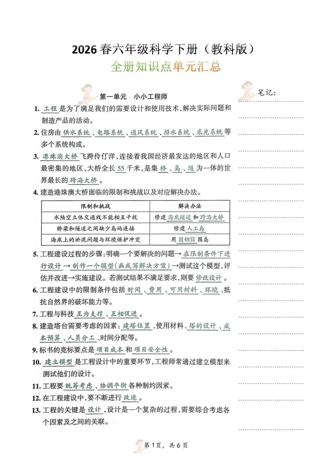 【免费下载】26春教科版科学六年级下册全册知识点单元汇总 | 复习提分 | PDF高清可打印