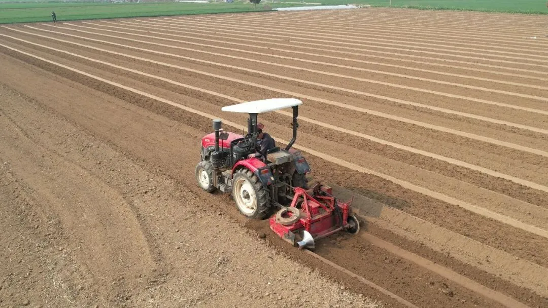 在种植大户李福生的育苗地里,一场现代农业的“接力赛”正在火热进行。首先登场的是苗床打畦机,它轰鸣着驶过,原本平整的土地上,一条长110米、笔直整齐的菜畦很快成型。紧接着将底肥均匀撒在地表,随后微耕机跟进作业,刀片飞速旋转,所过之处,土壤变得细碎松软,肥料也被精准地混拌其中。
