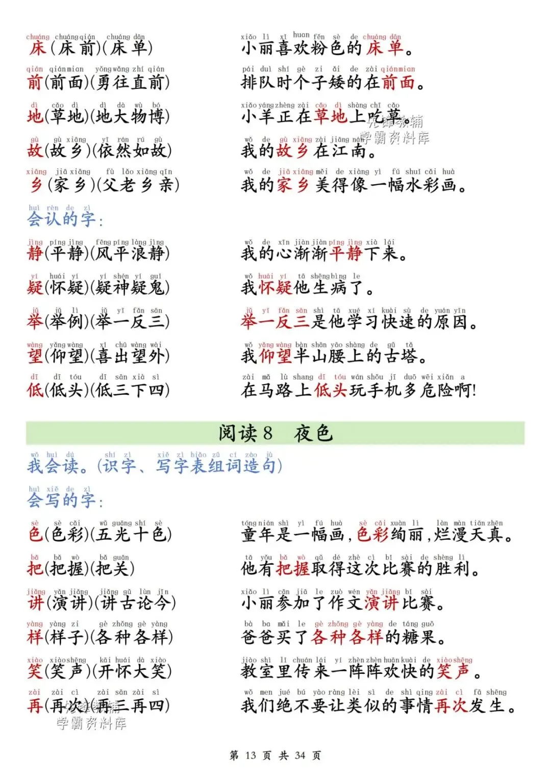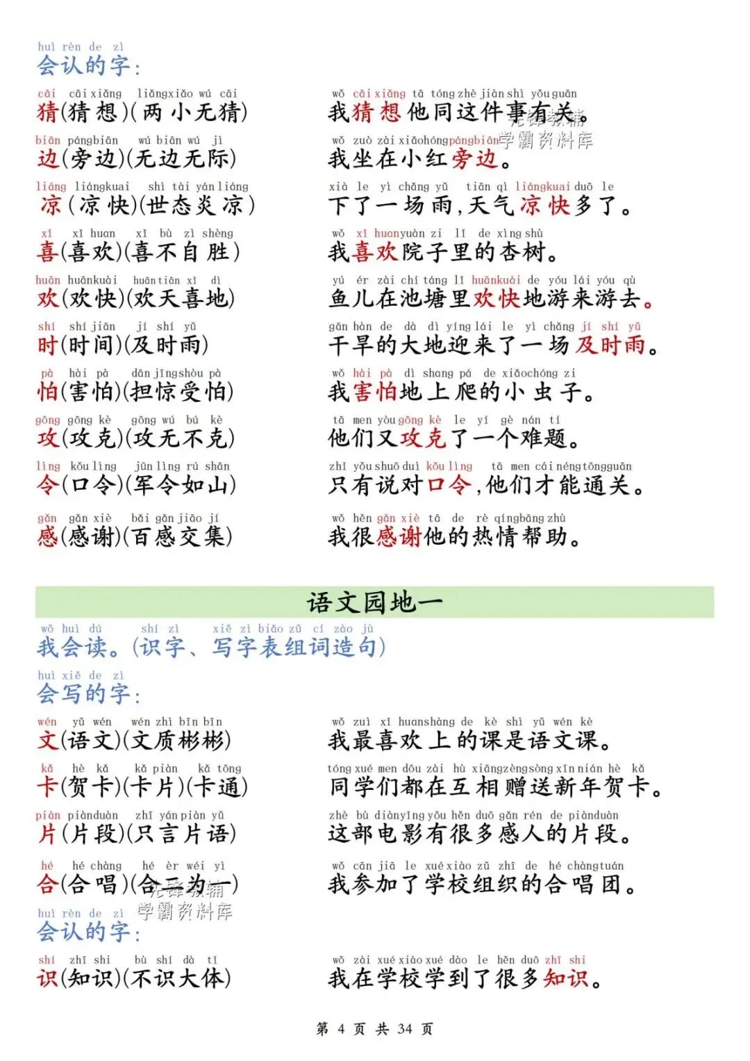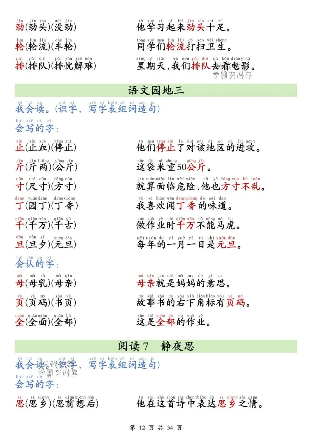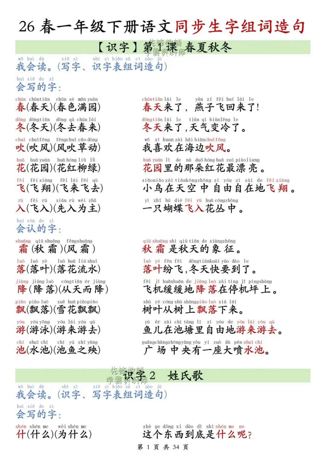 一年级(下)语文同步生字组词造句(有电子版可打印)