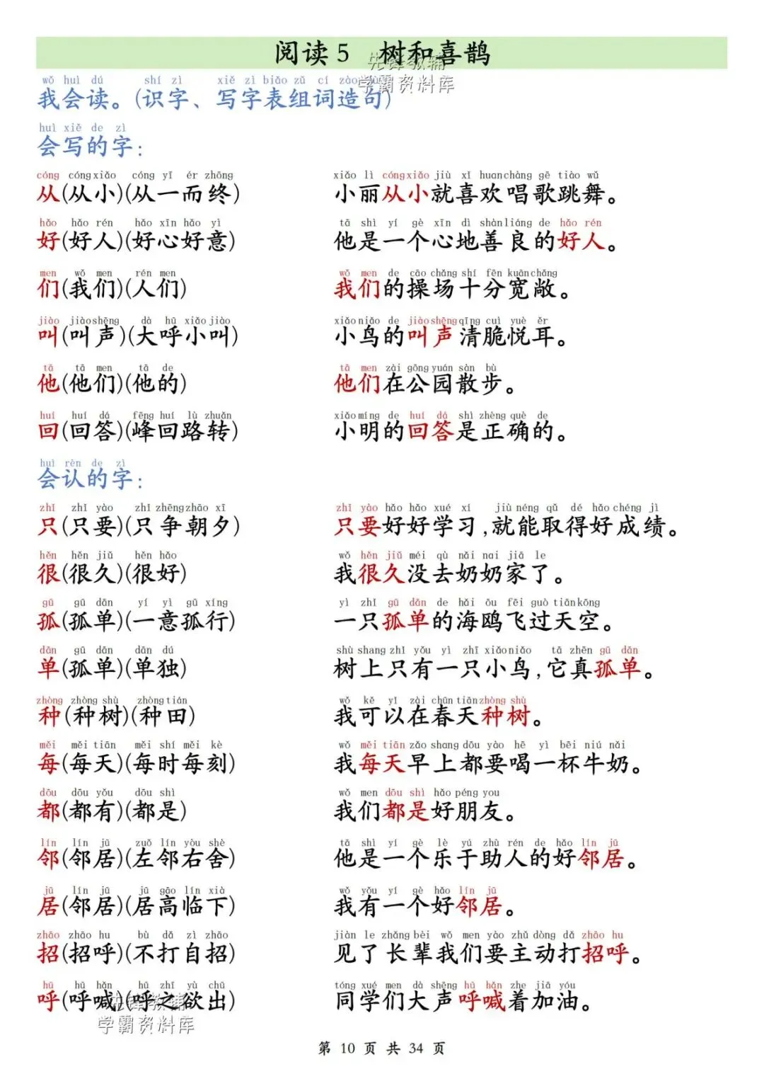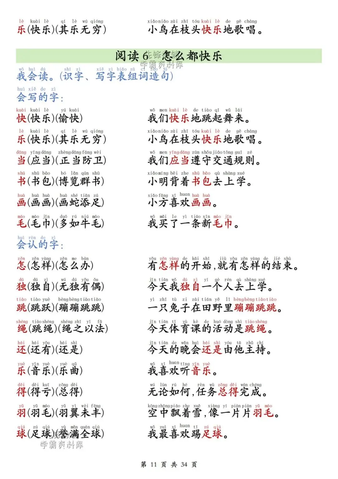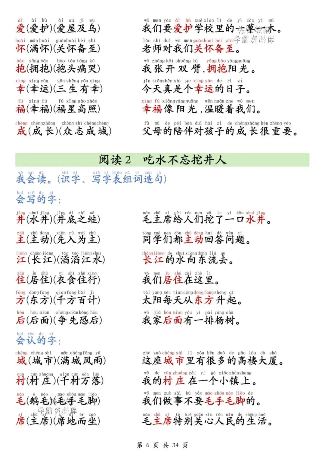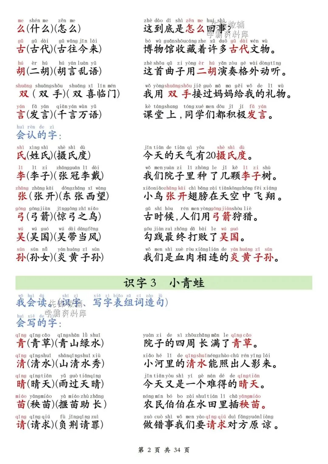 一年级(下)语文同步生字组词造句(有电子版可打印)